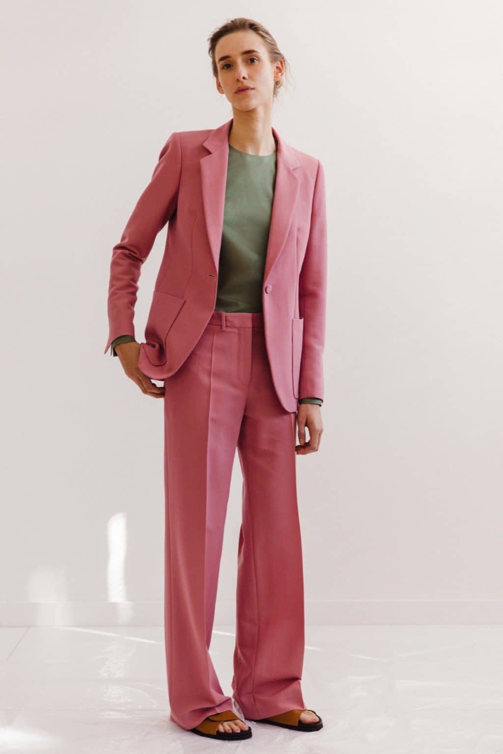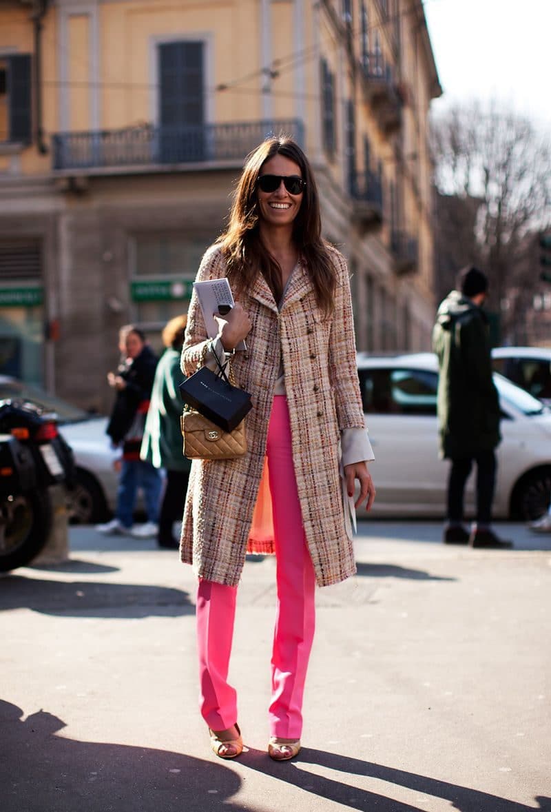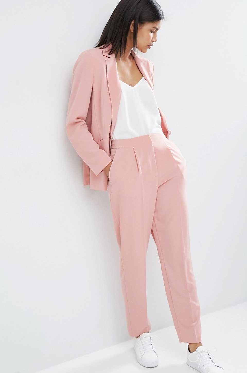 Pantsuit has always been a classic that does not go out of fashion. Now it is the most fashionable trend. All designers presented at least one version of the costume. Monochrome pink suits perfectly complement your wardrobe and give it brightness. You can choose pastel pale pink or bright and juicy pink. Give preference to an elongated jacket. And trousers can be of different cuts and silhouettes. The main thing when choosing a costume is the lack of a hint of formality. Therefore, you can choose any shoes, both with heels and sports shoes.