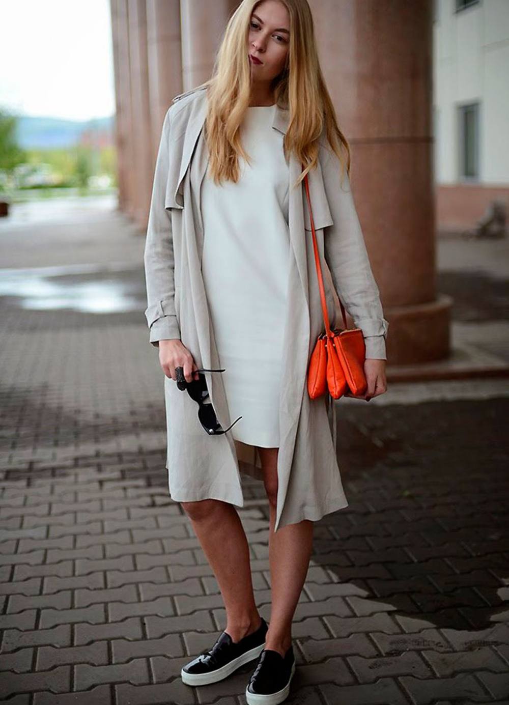 White slip-ons are also considered universal. They can be worn under a blue, black or bright color skirt.