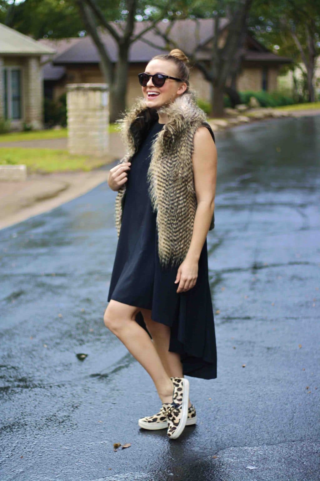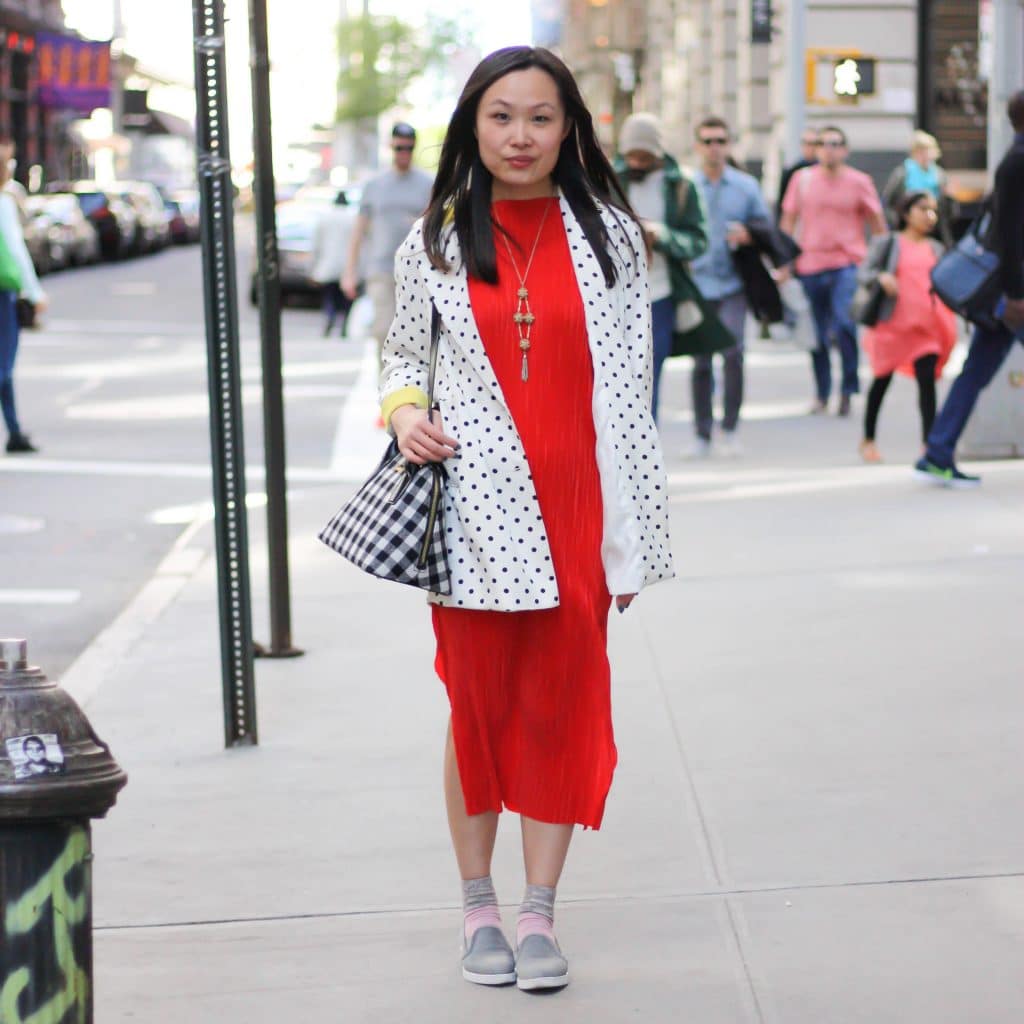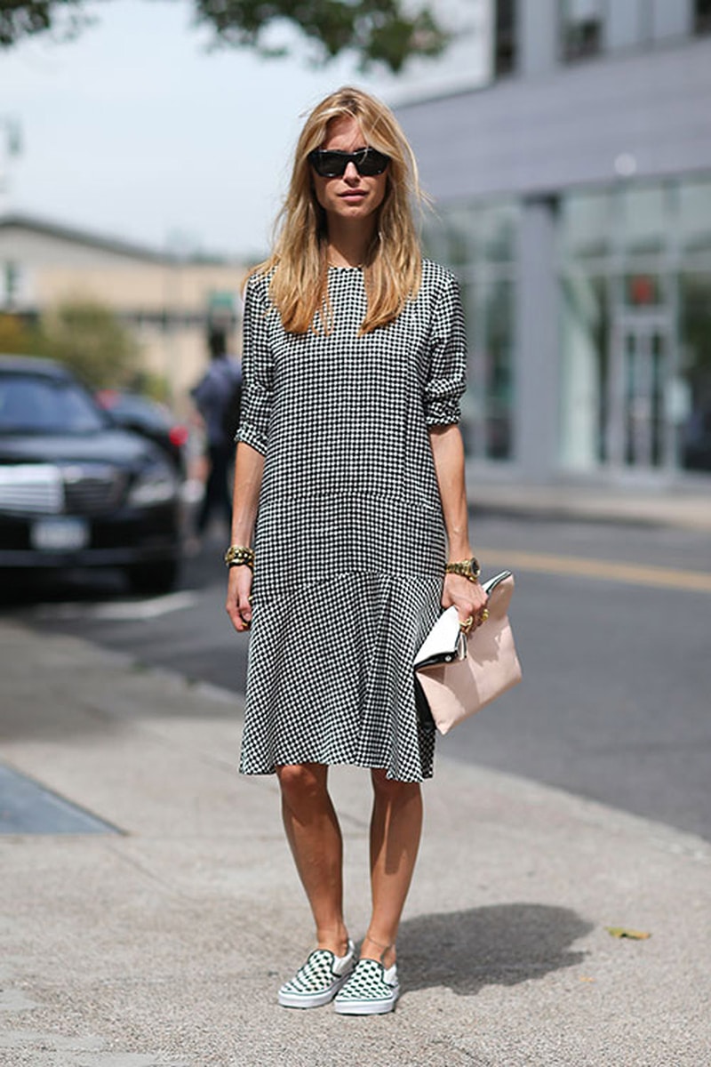 For a gray dress, gray slip-ons are a great option.