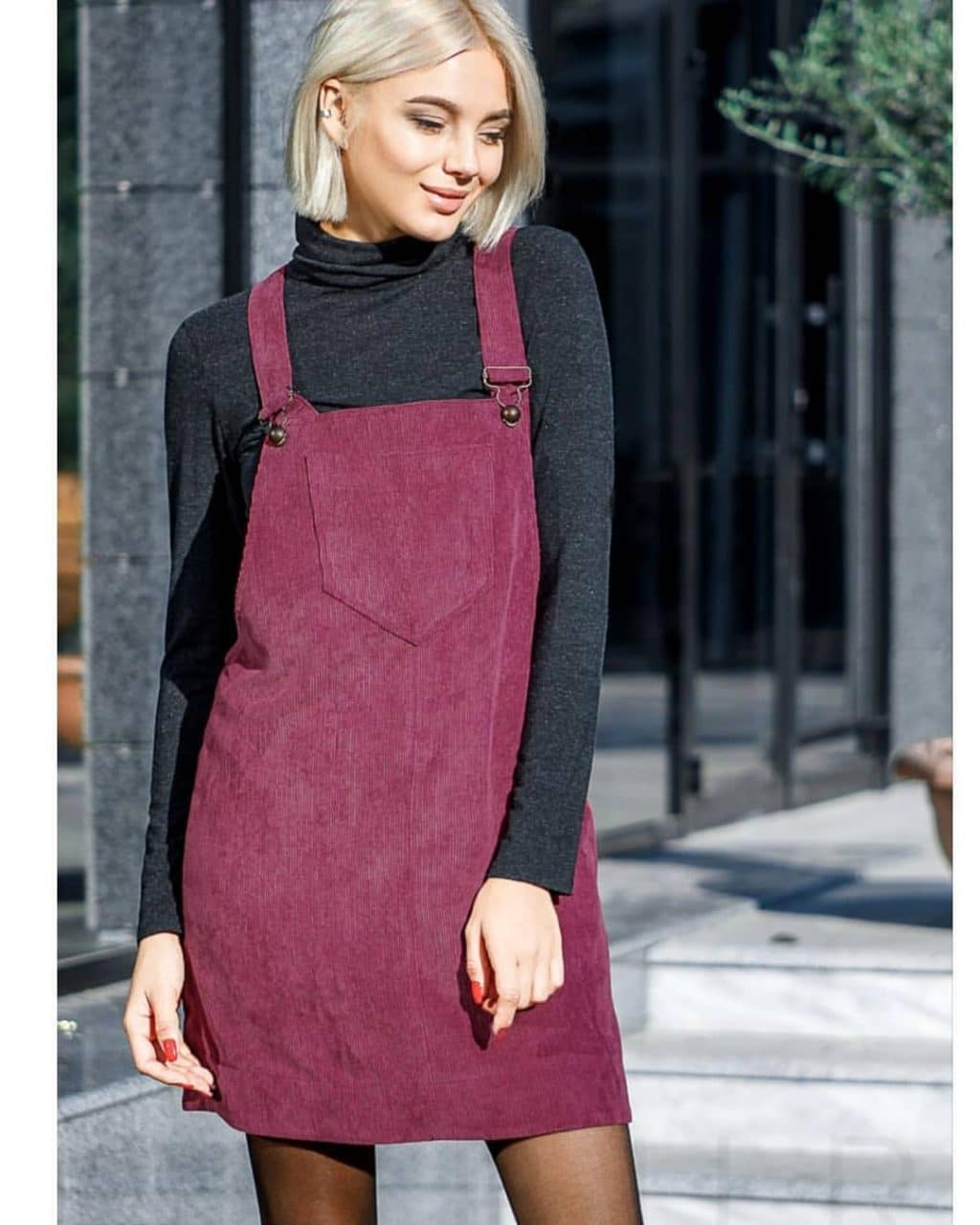 Choose a sundress from dense fabrics: wool, velor, jeans, leather. Then the image will be more harmonious.