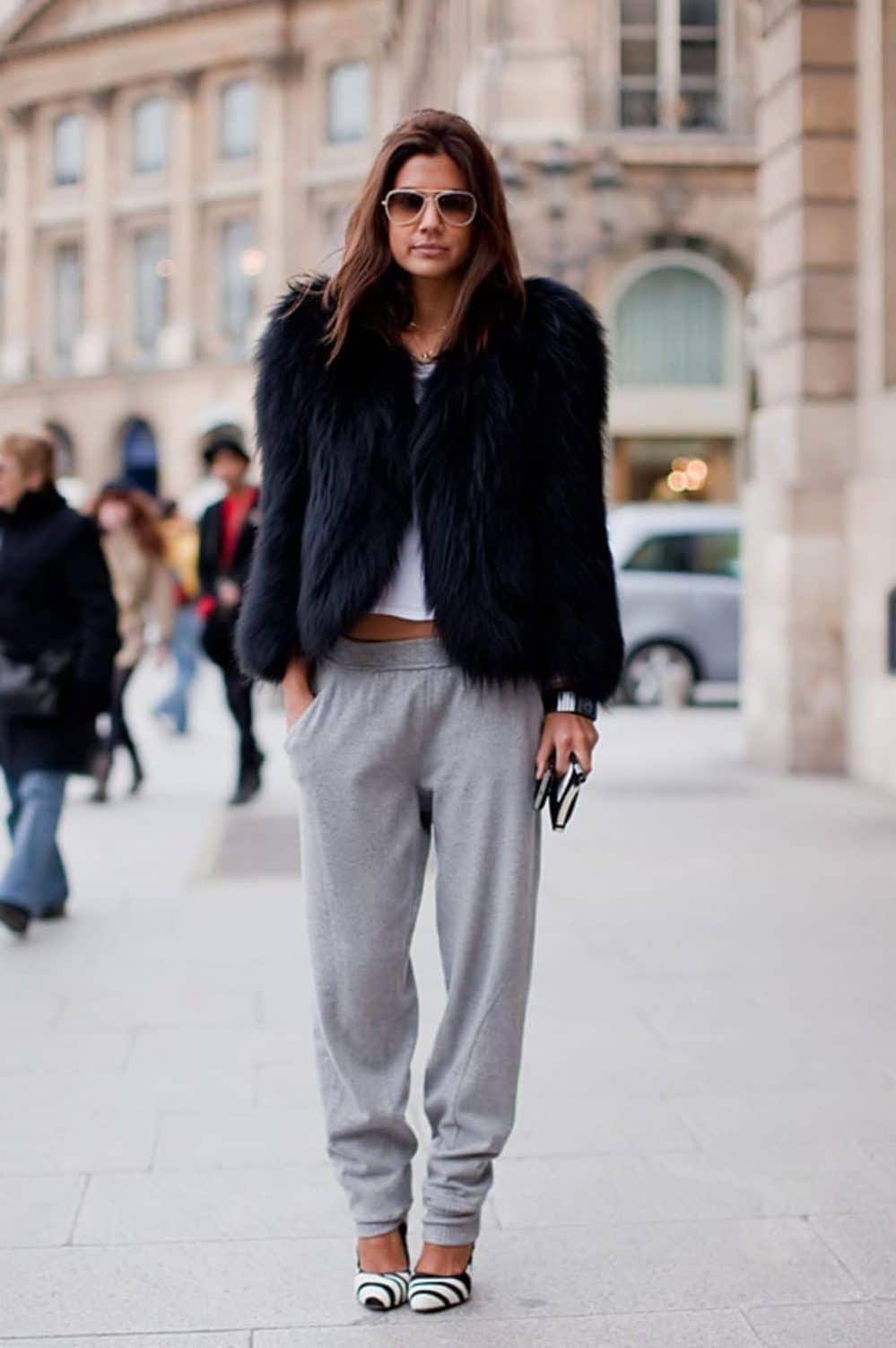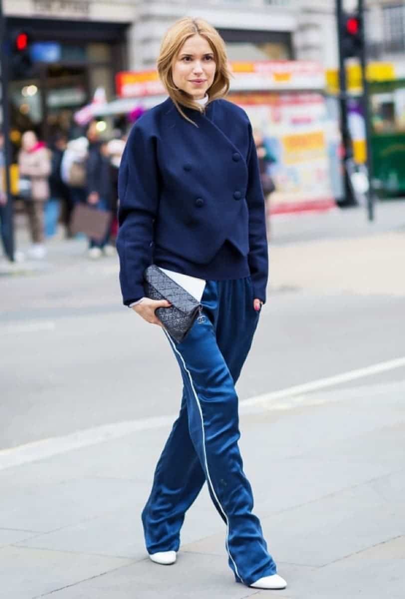 It would seem impossible to combine a sporting thing with high-heeled shoes? And no! With sweatpants and pumps, you can create great bows.