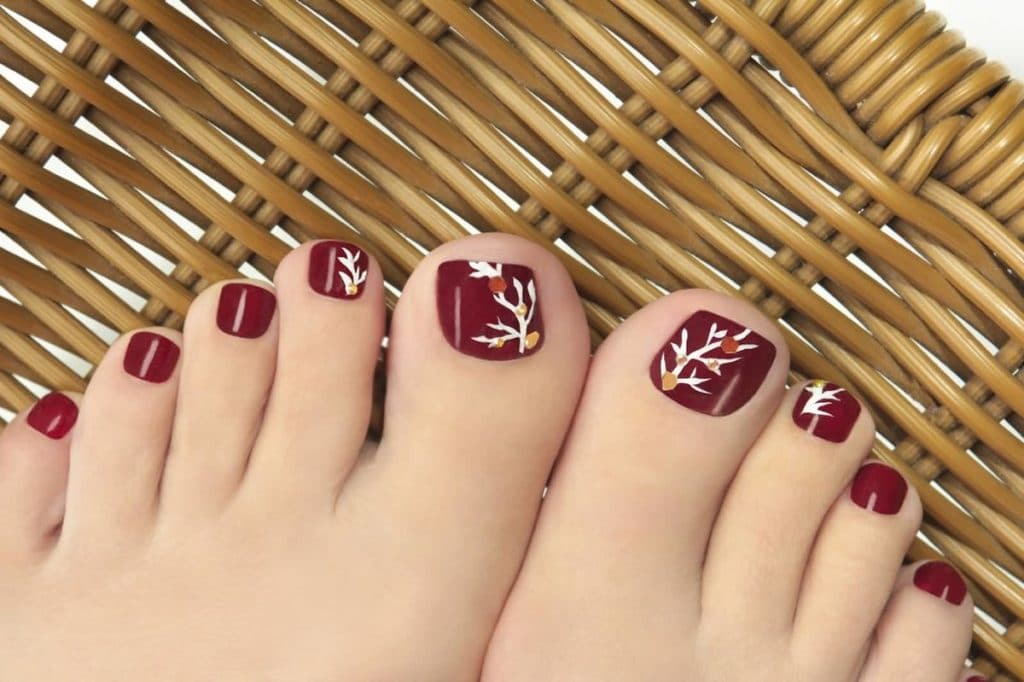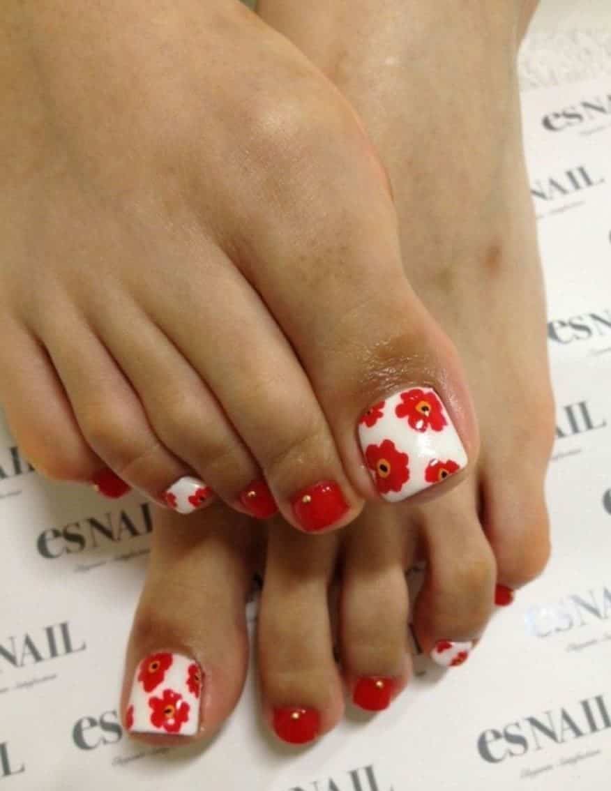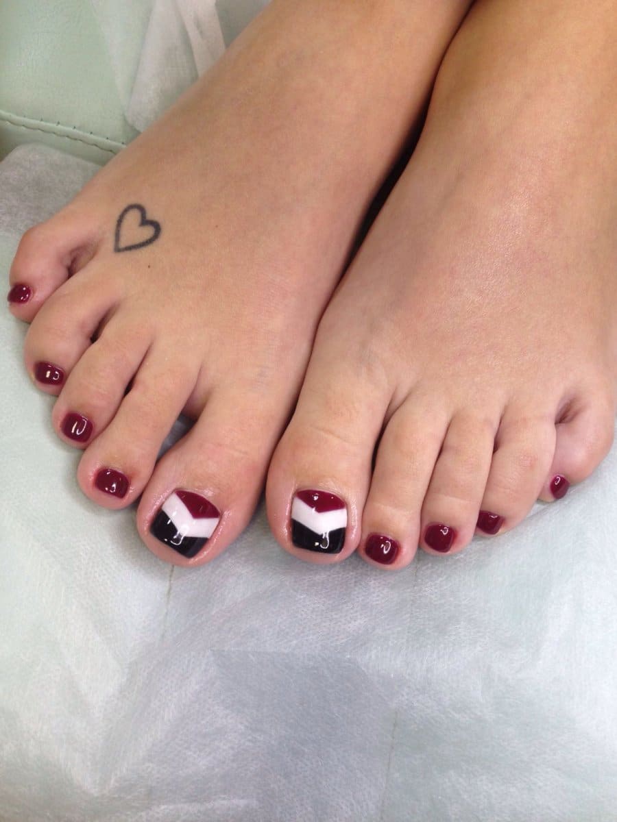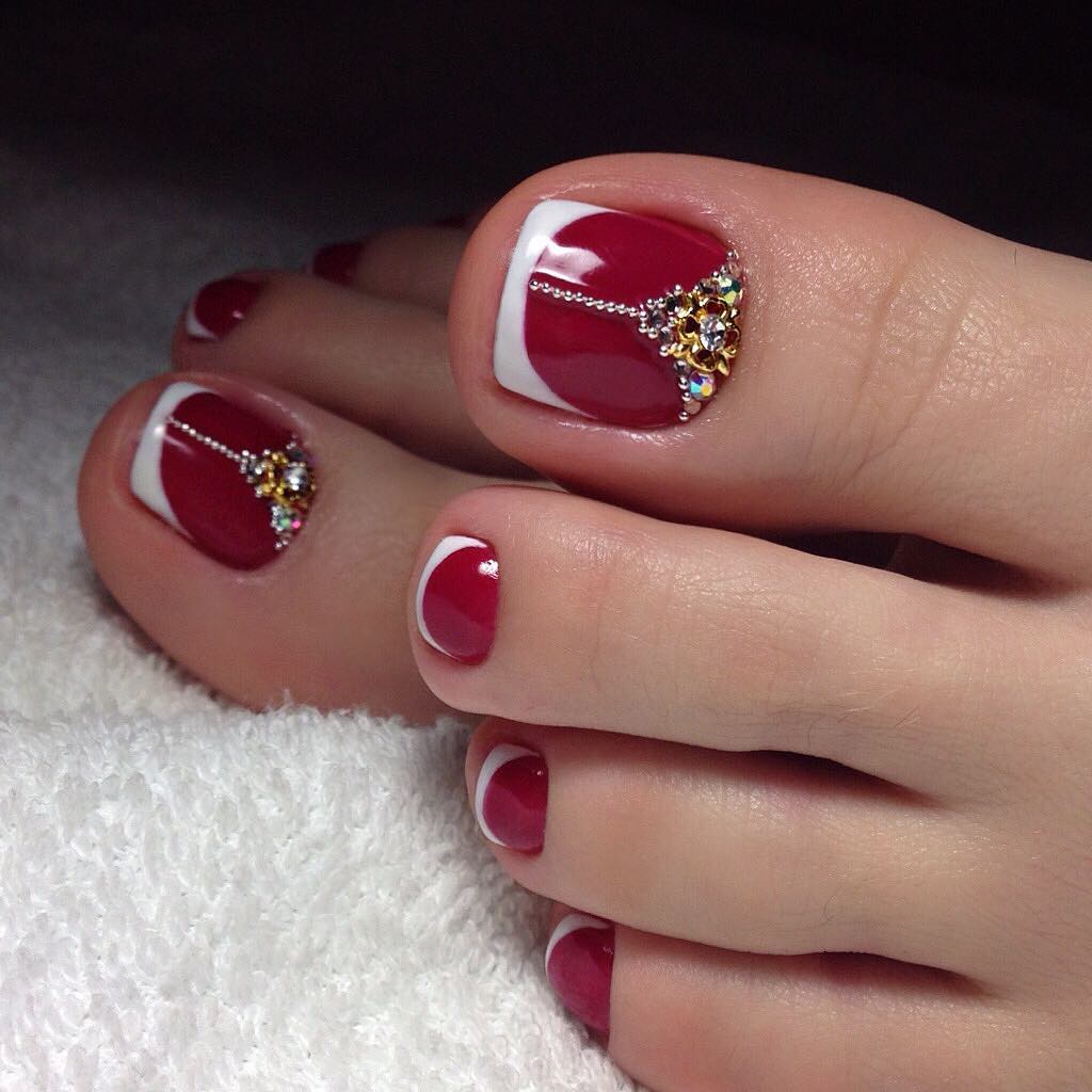 Color preferences in design usually remain in black, white, gold and silver. They will most contrast with the red color of the pedicure.