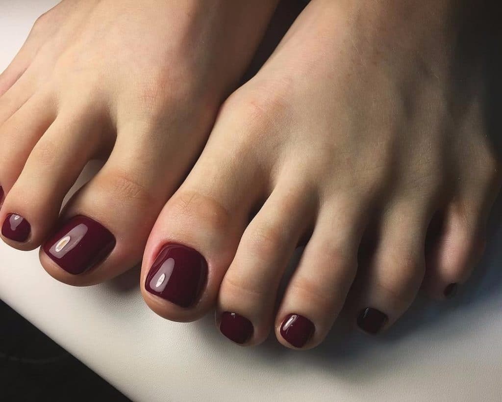 Confident girls choose this option. Color symbolizes luxury and passion. Red pedicure will immediately attract the attention of others and let them know that you are not timid.