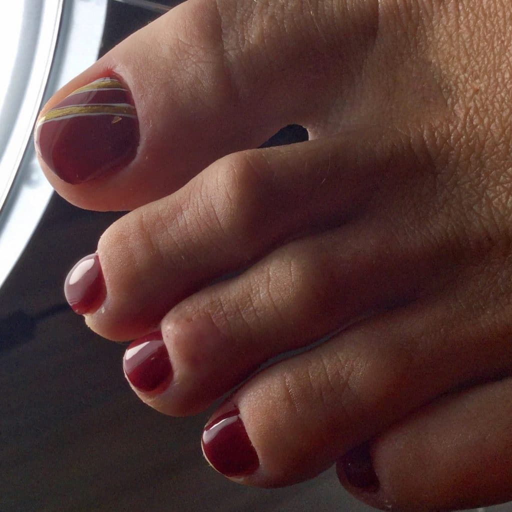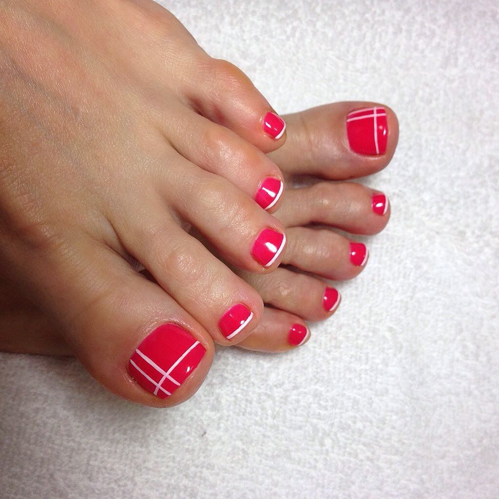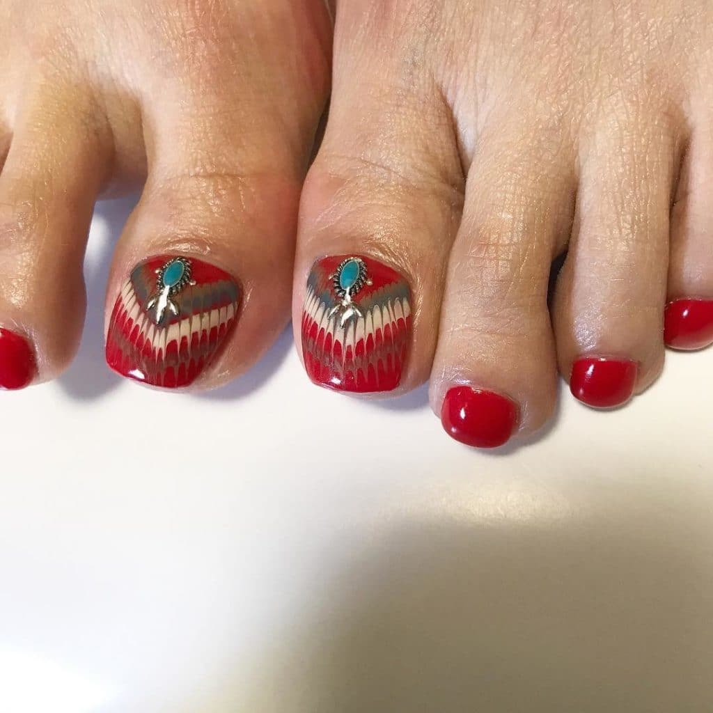Red pedicure with design
