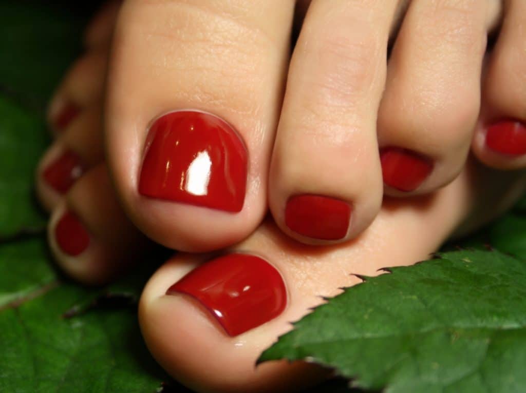 Solid red pedicure