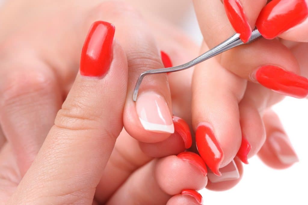Now go to the cuticle pruning. Here you can choose scissors or nippers. There are also special cuticle removers. Simply apply them and then remove the soft cuticle with wooden sticks.