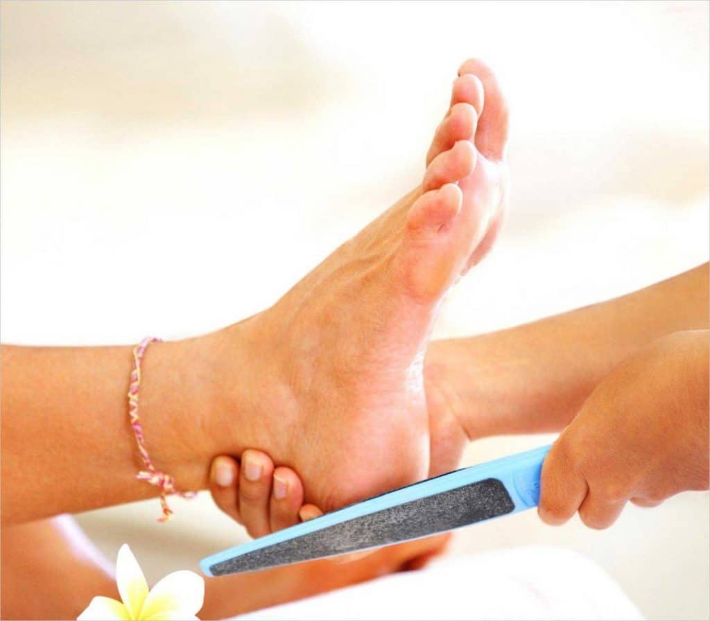 Do not forget that you need to process not only the heels, but also the entire surface of the feet. Often girls miss finger growth sites, and they also quickly become rude.