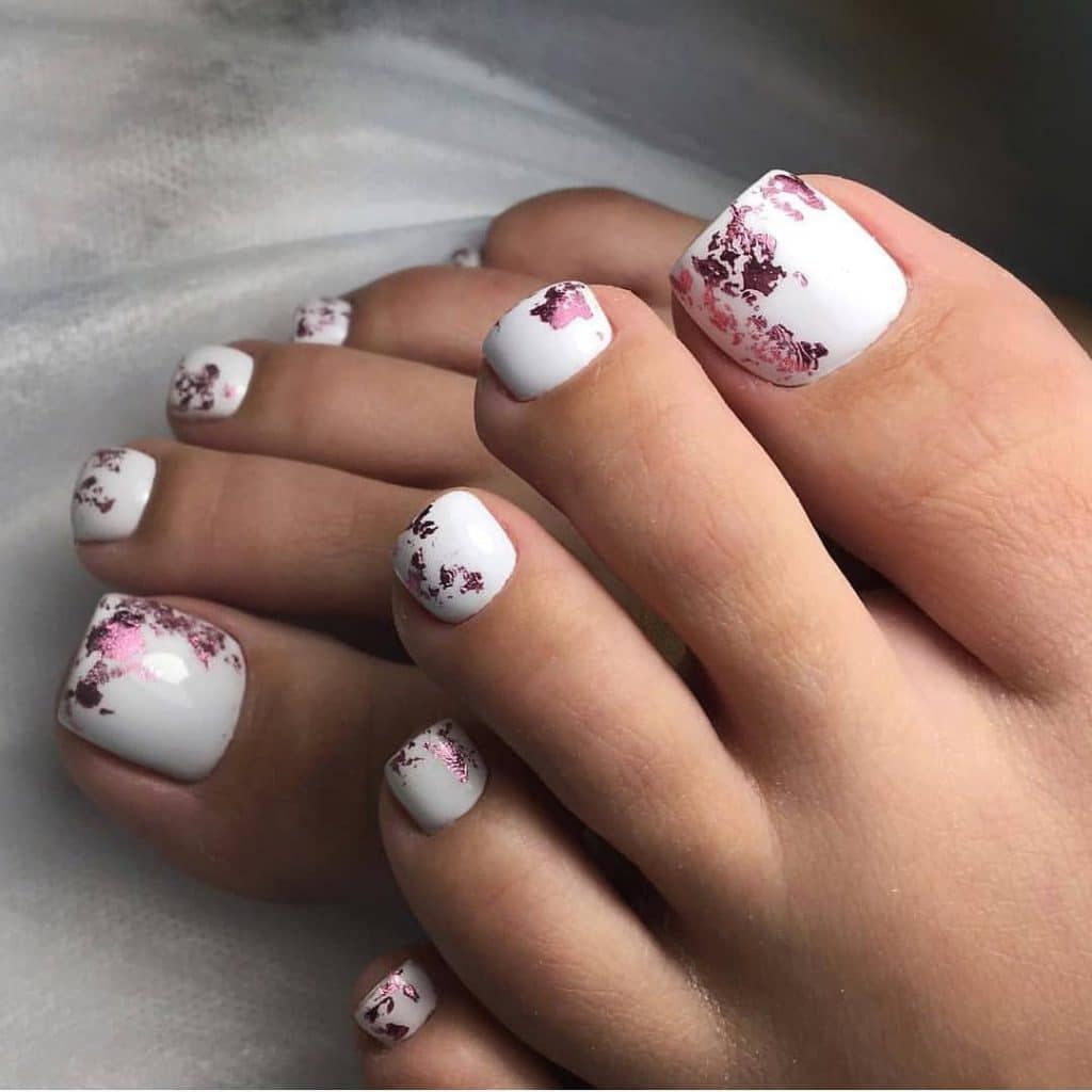 Getting started with foot disinfection. If necessary, do a full pedicure. It can be done as independentlyand in the cabin hardware way. Then proceed to the removal of old shellac. This can be done with foil, sponges and nail polish remover. Just soak the sponge with the liquid and cover it with the nail. We fix all this with foil for a better effect.