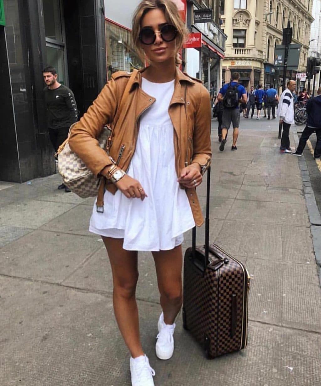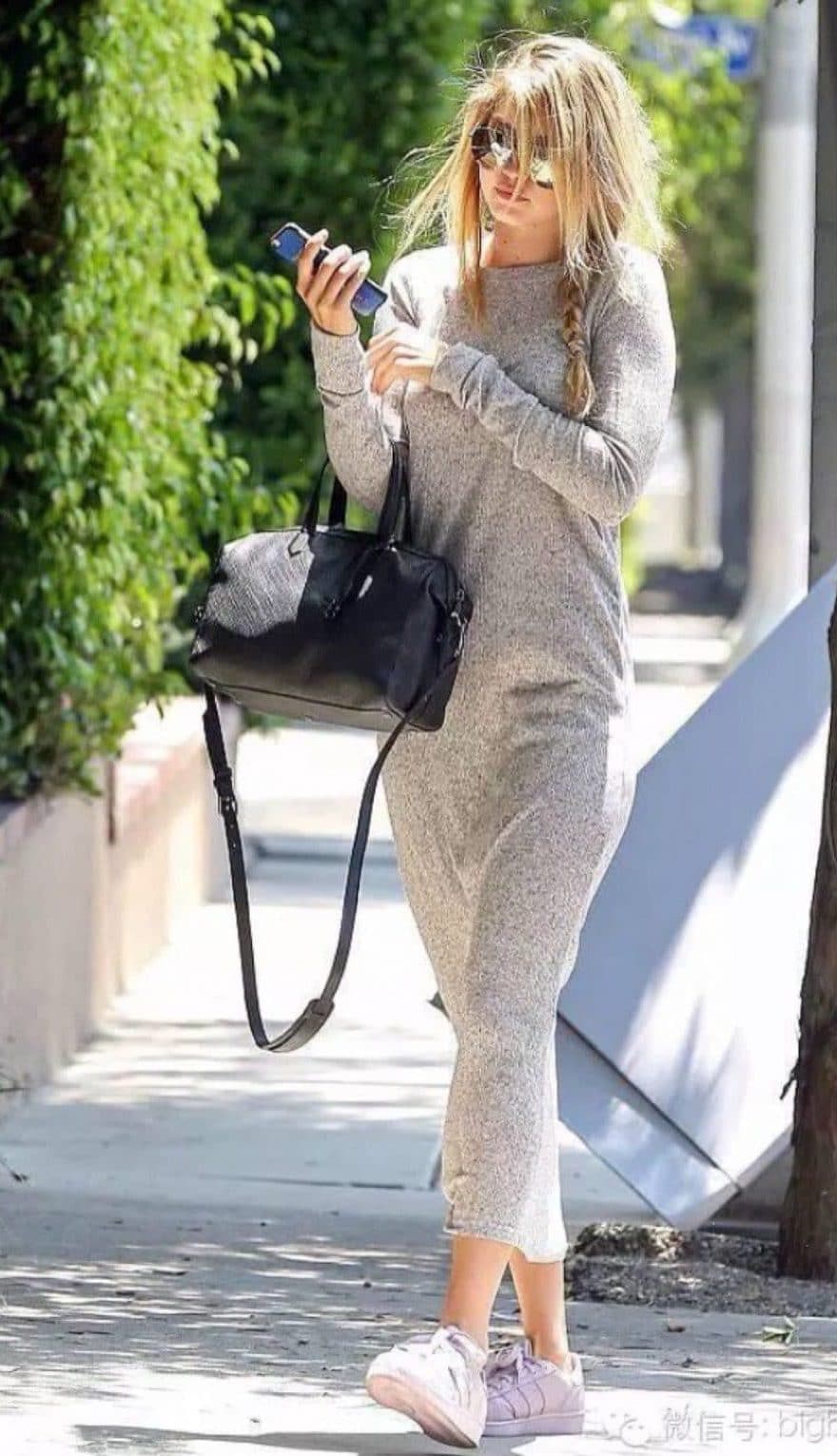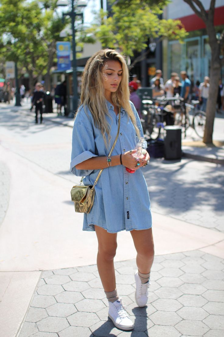 To create a calmer, but no less spectacular image, you will need other types of sneakers. For such models, it is better to choose straight, striped or in an easy print dress. Add sunglasses, bags, and other accessories to the look.
