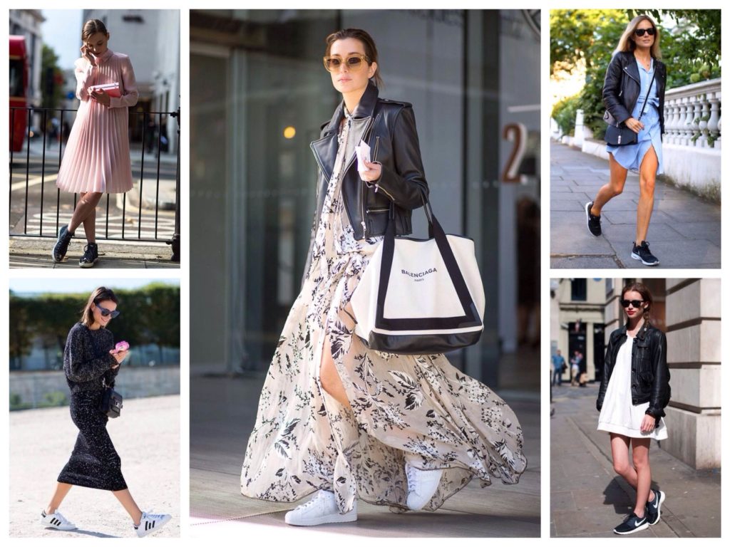 Dark dresses can be combined with dark sneakers. And lighter and colored with white sneakers.