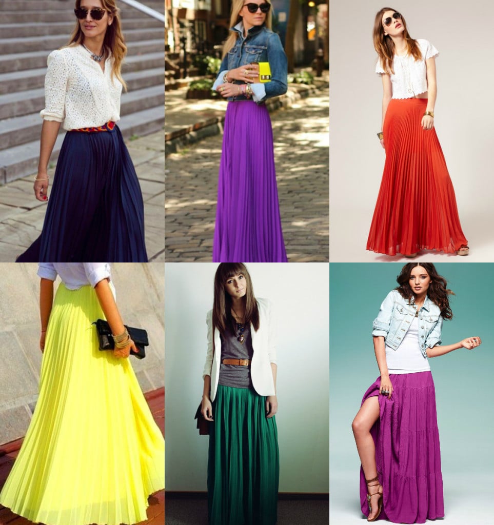 In this article we will look at several types of maxi skirts in different color categories. And we will figure out what and how to combine it correctly.