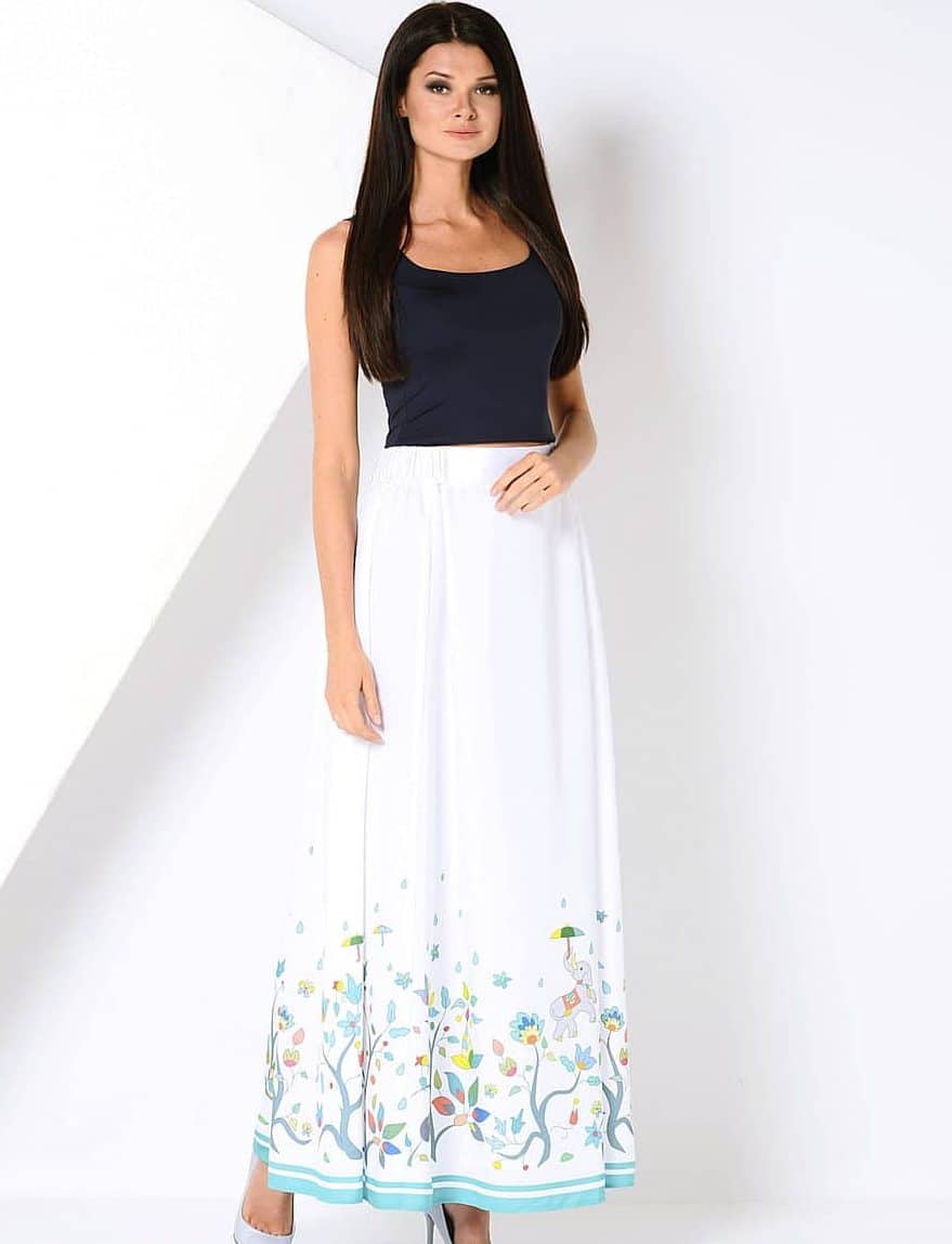 Undoubtedly, a white skirt is the most popular among girls. Because white color is universal, it is easiest to pick up the top for it. Be it dark, plain or bright.