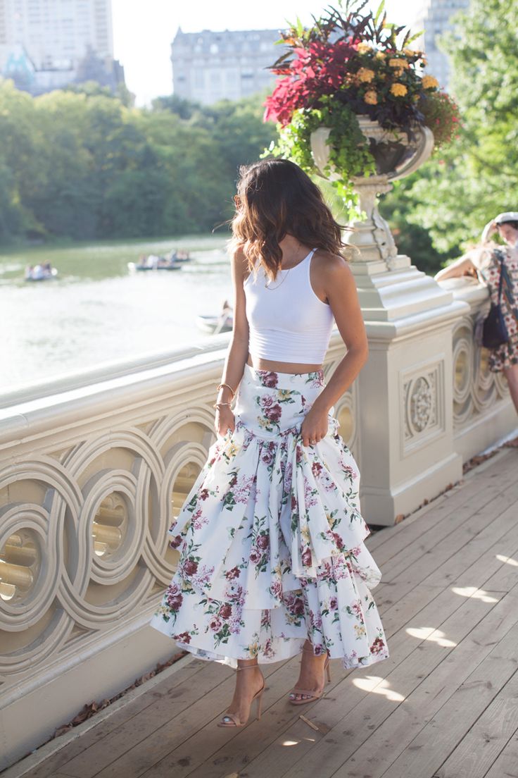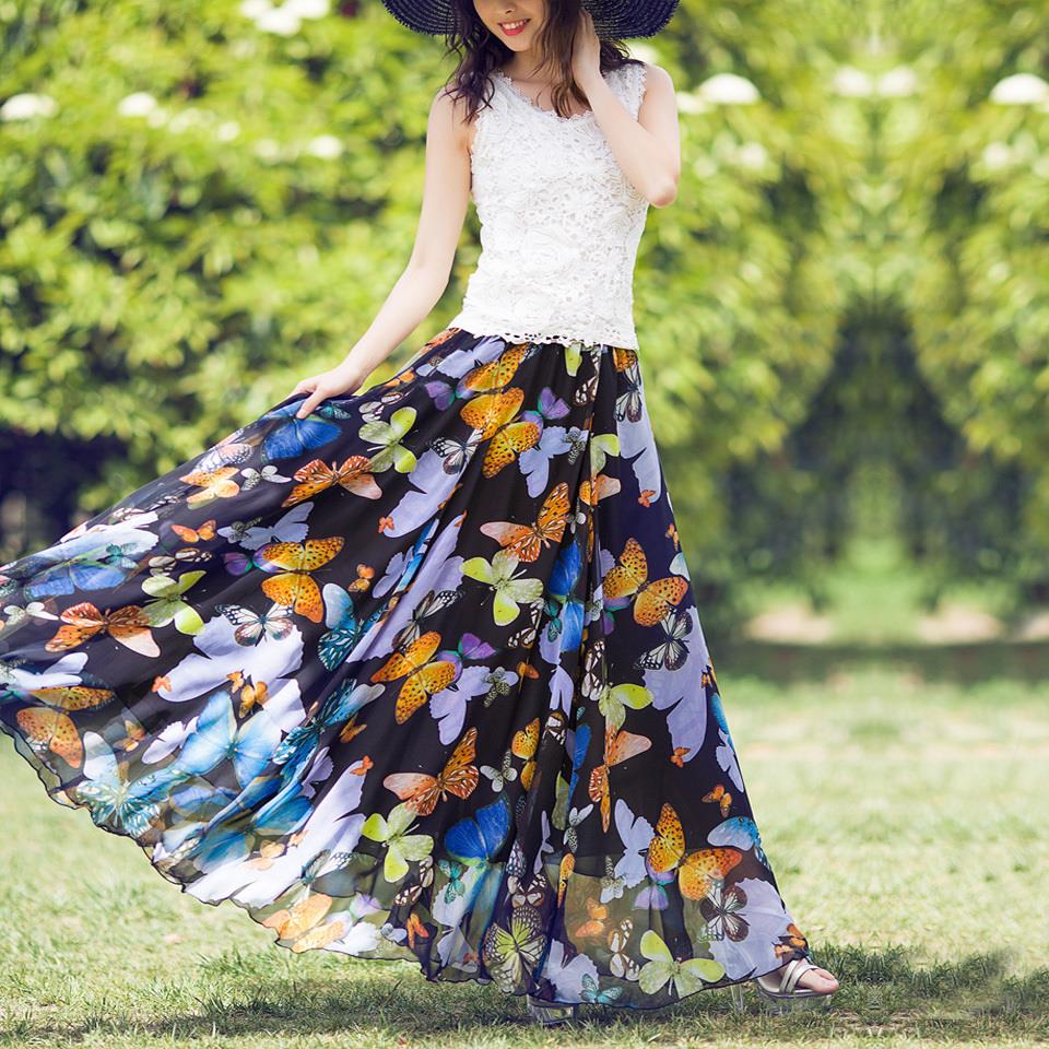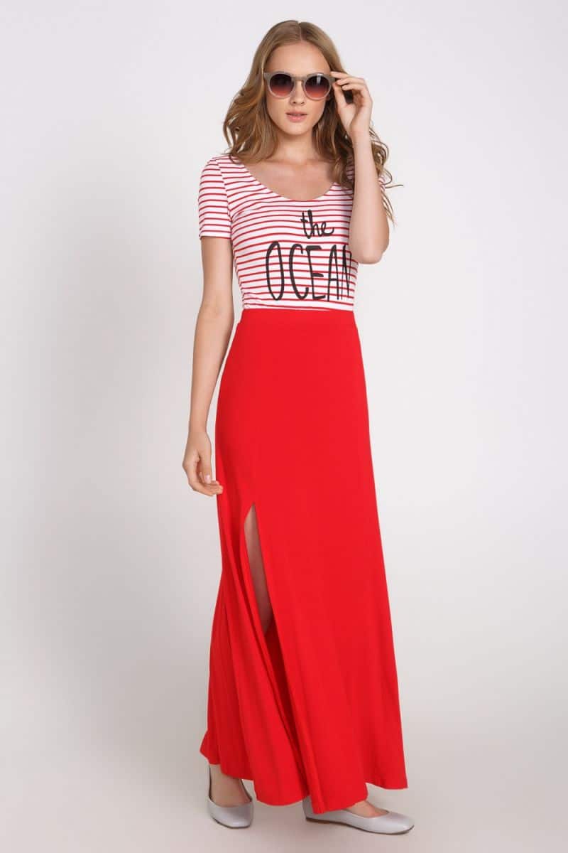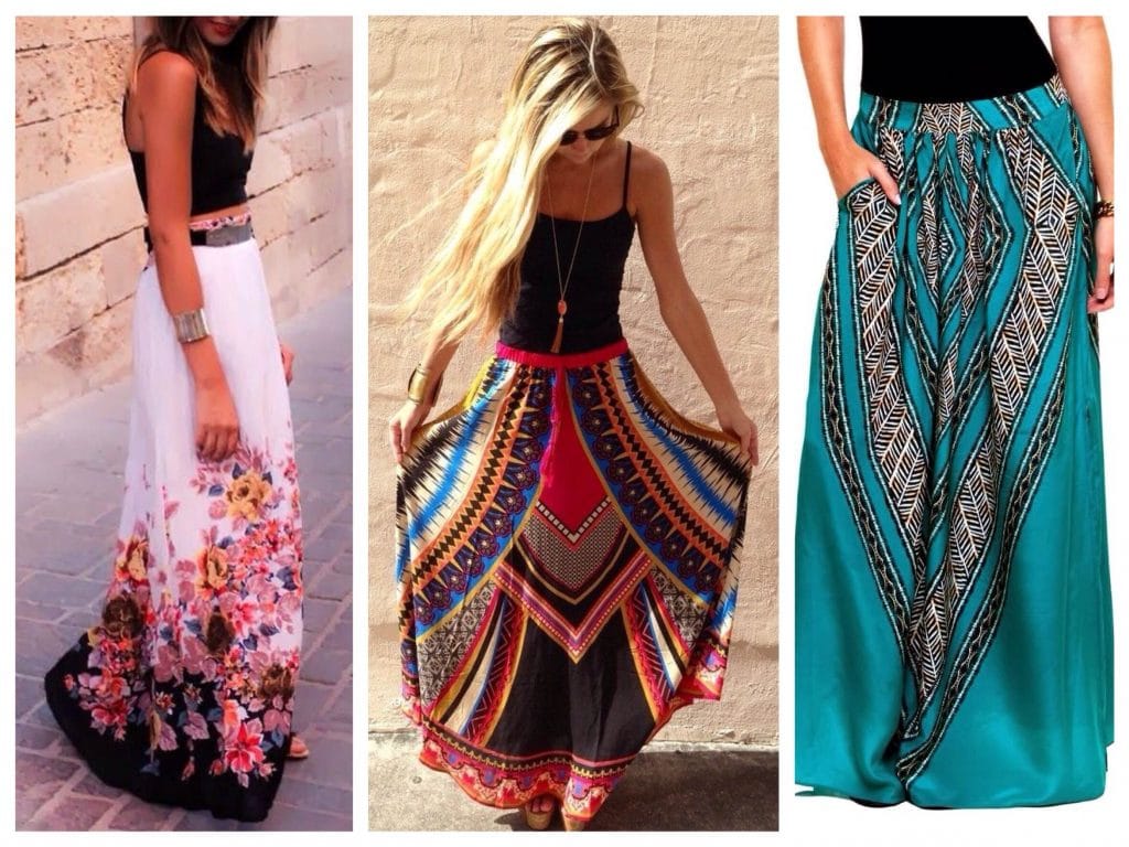 Long skirts look aesthetically pleasing. They are sewn from different fabrics and presented in any color scheme or with a bright, colorful print. Such a skirt can adjust your figure by visually lengthening it. She is great for girls not tall and tall. There is only one rule for choosing such a skirt. In your image there can be only one magnificent attribute, bottom or top. In this case, almost all maxi skirts have a flared length. Therefore, you should choose a more fitted upper, skillfully combining the colors of blouses and the skirt itself.