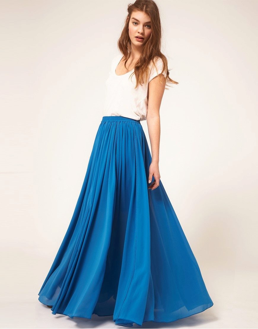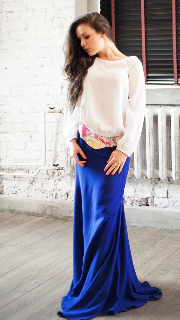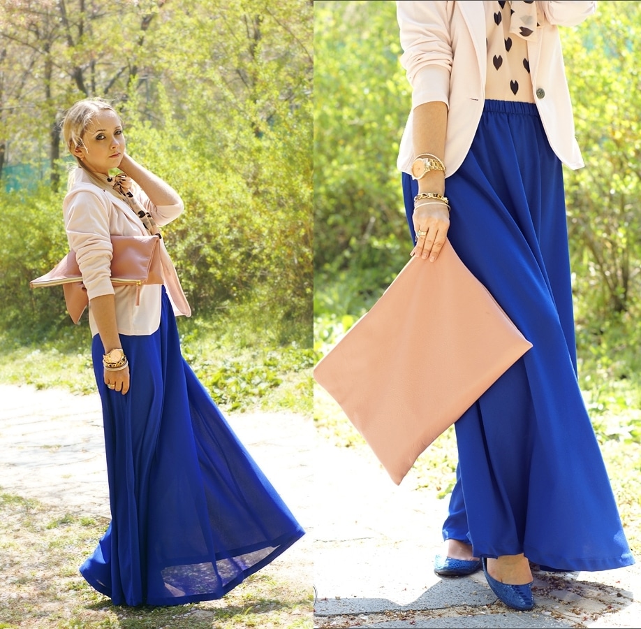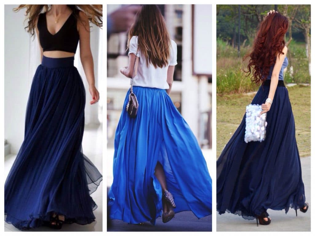 Blue maxi skirts - have some attractive property. Blue itself is noble. He calms and gives peace. In such a skirt, you definitely will not go unnoticed.
