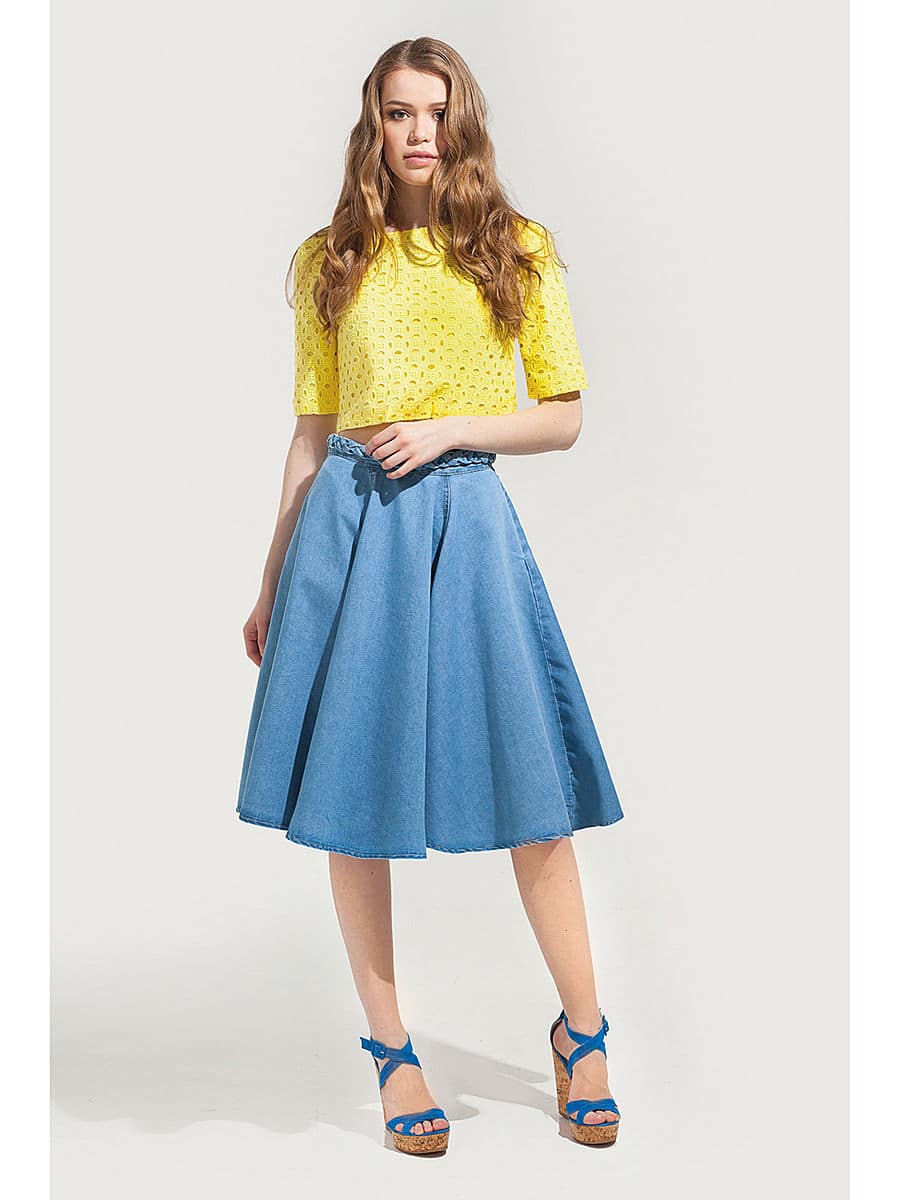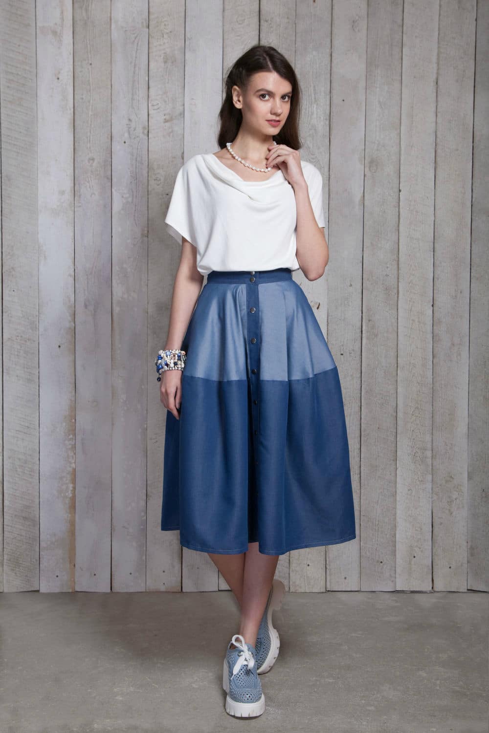 A denim skirt is a great thing that goes well with a variety of clothes. It is available in different styles and is presented in different colors. The most popular type of denim skirt is considered classic. It has a standard light blue or deep blue saturated color. Such a skirt over the years has become an integral part of the youth style. And over time, women of the older generation began to pay attention to her. And not in vain. After all, there are different types of jeans skirts. Starting from the shortest ones - mini, up to a length of toes. Consider what will be best worn under such a skirt and how to do it right.