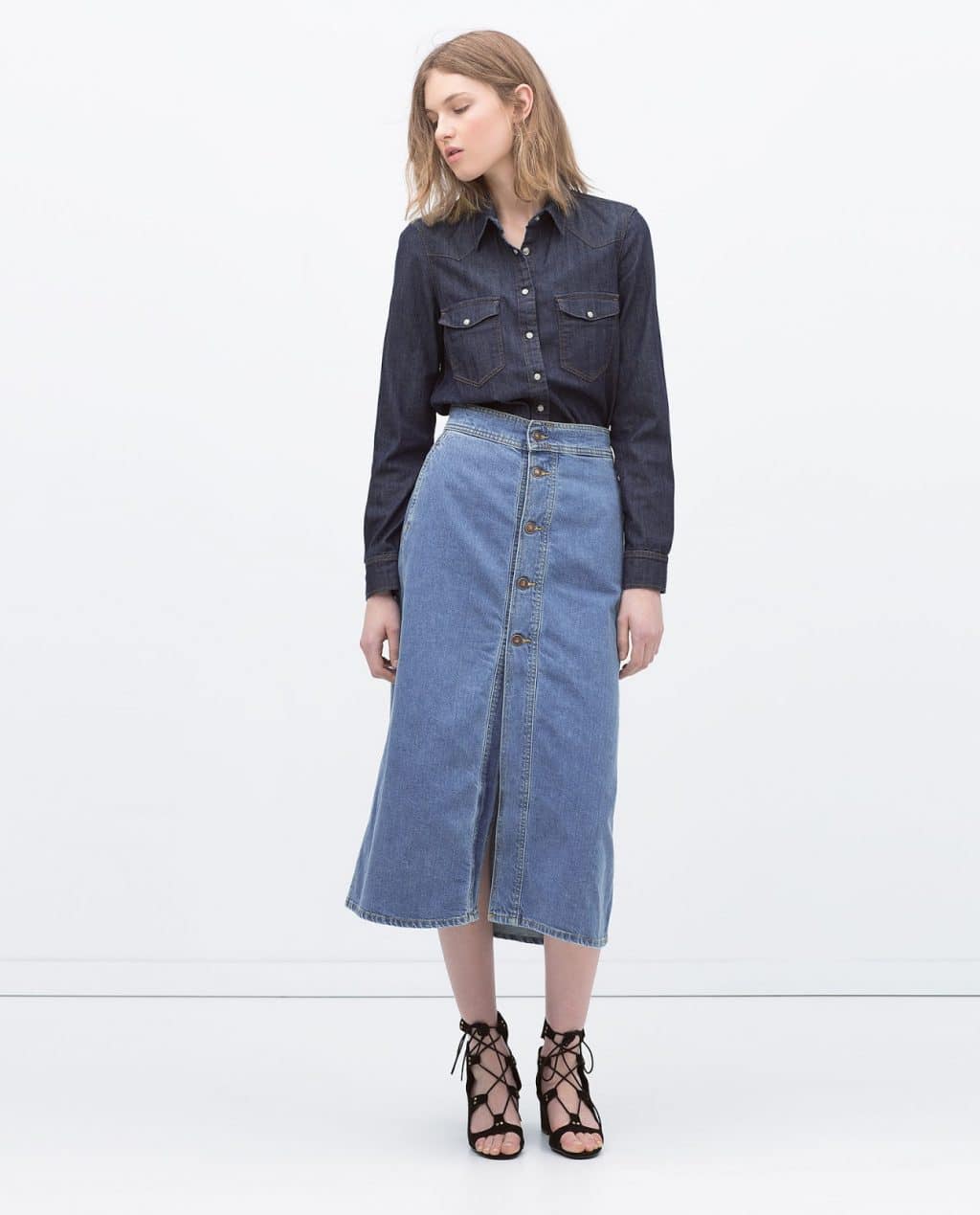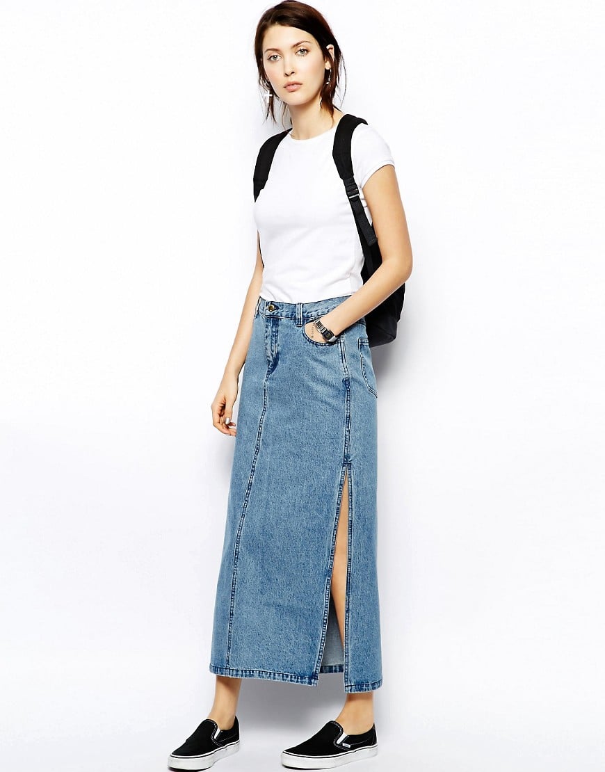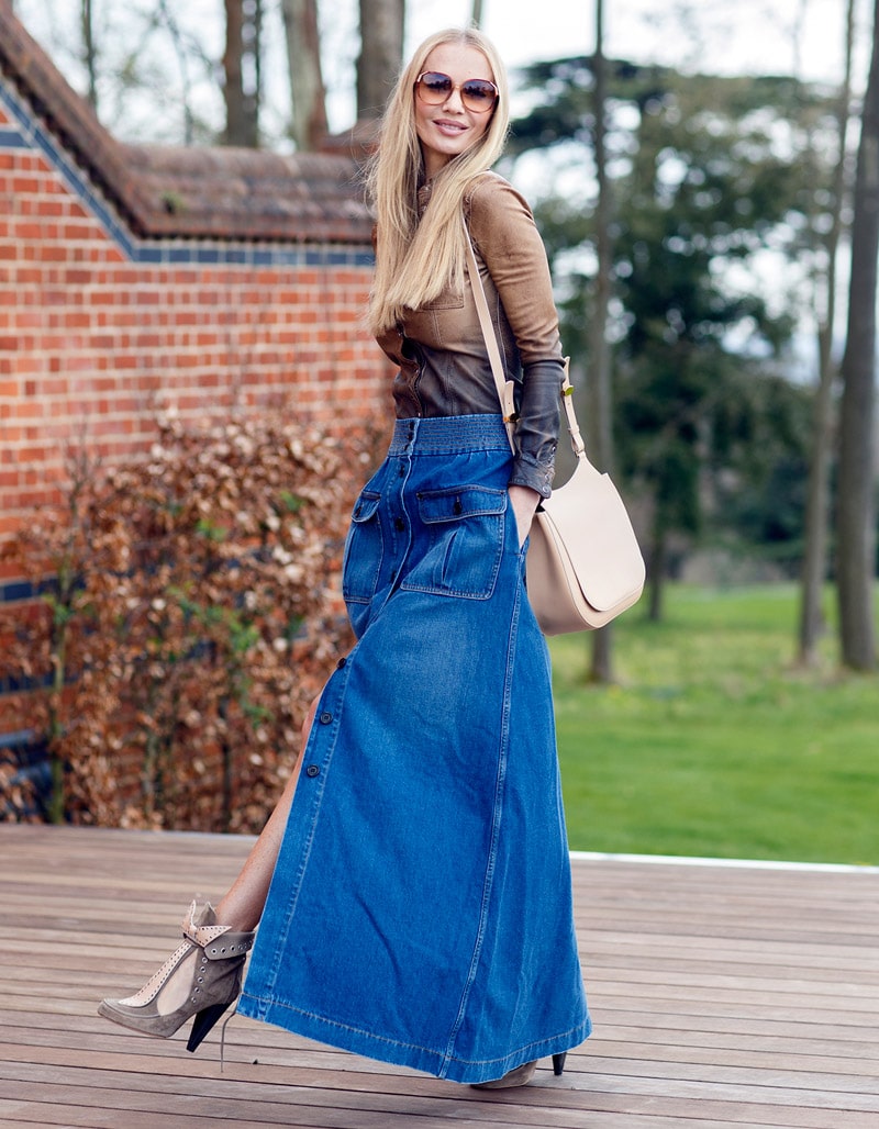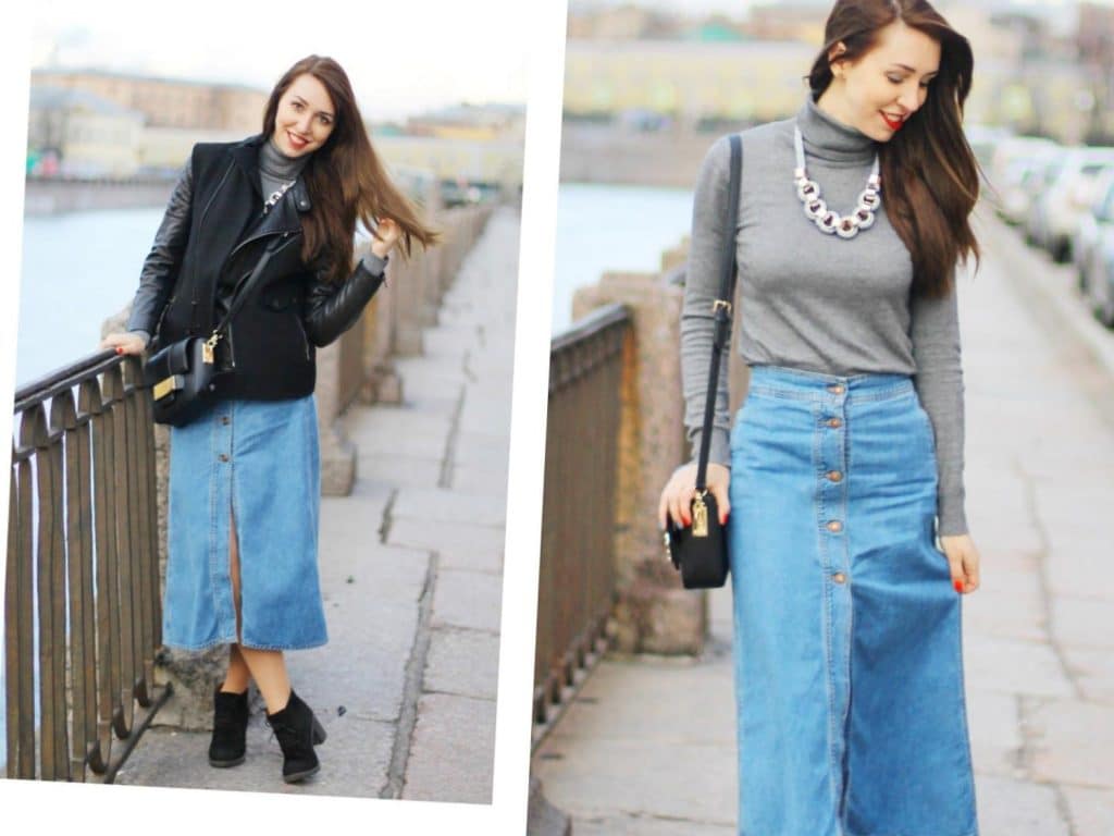 A long denim skirt was very popular in the 90s. But, as we all know, the fashion of bygone years returns to us again, gradually gaining new popularity.