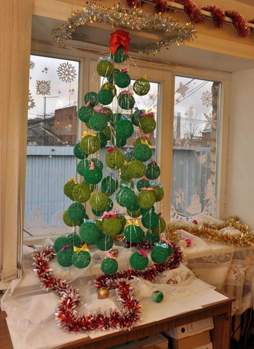 - Homemade christmas tree. Such Christmas trees are made from improvised materials. You can find ready-made ideas for a homemade Christmas tree on the Internet or come up with it yourself.