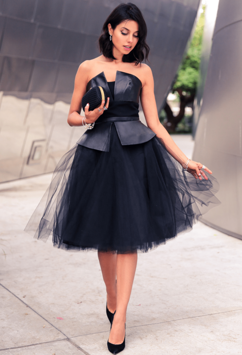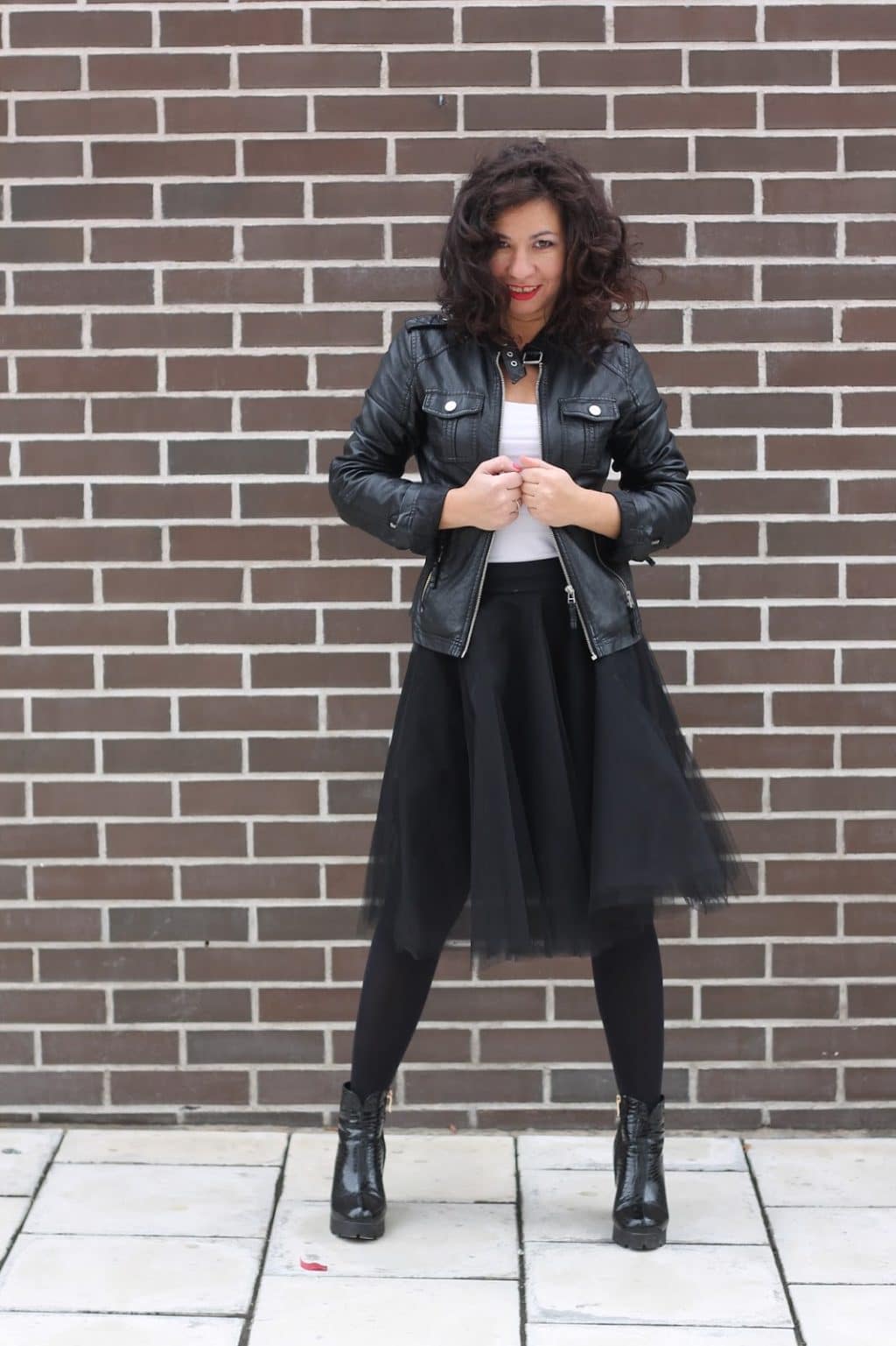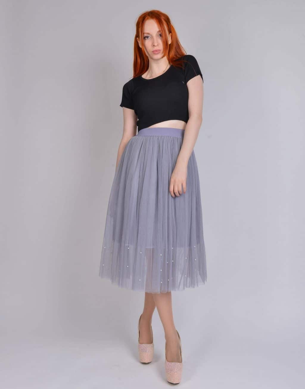 It is good to combine a tulle mini skirt with closed t-shirts or t-shirts. It is appropriate to supplement the open blouse with a jacket or jacket. An elegant medium-sized handbag and ankle boots or closed heel shoes will balance the look.