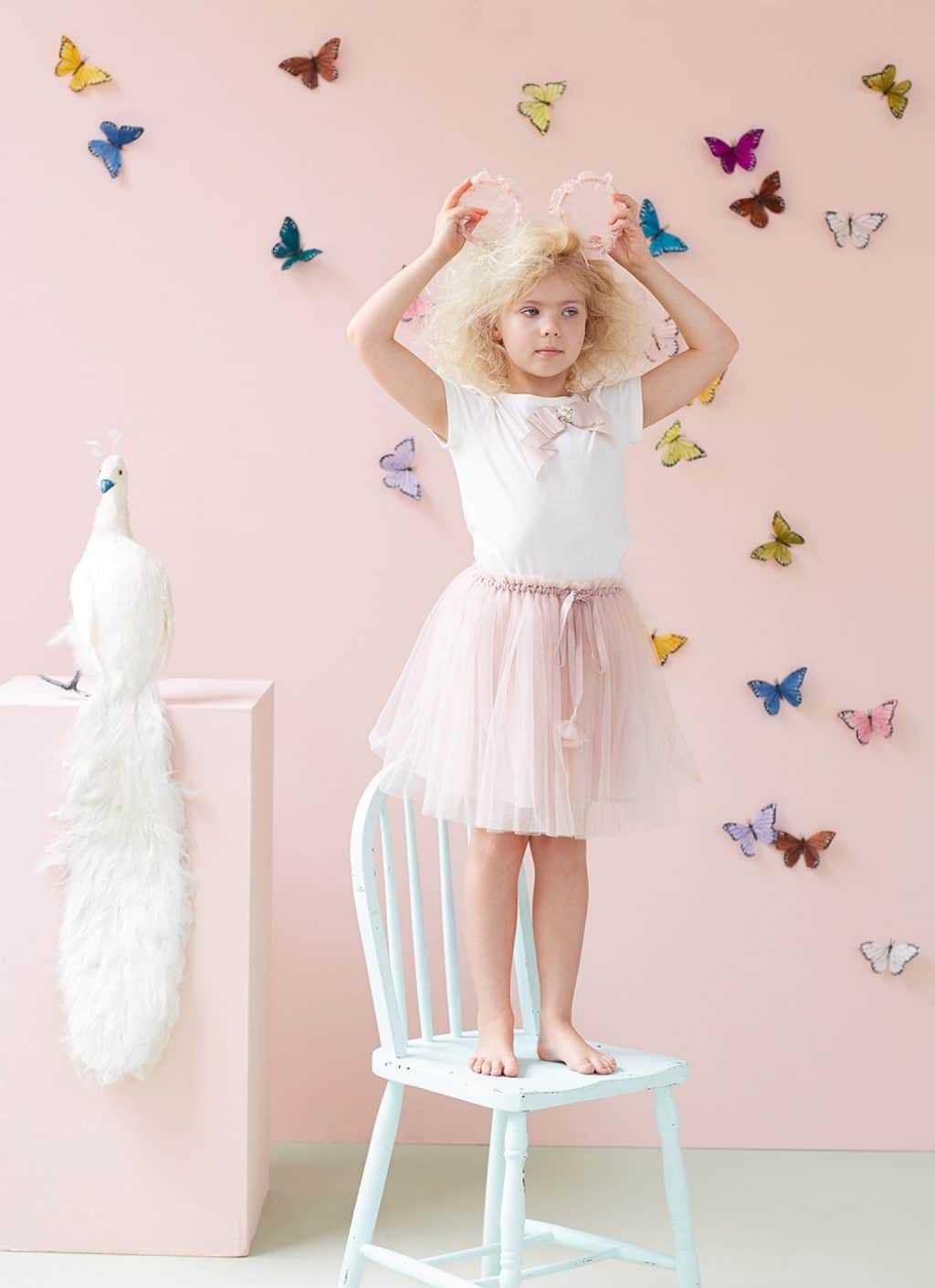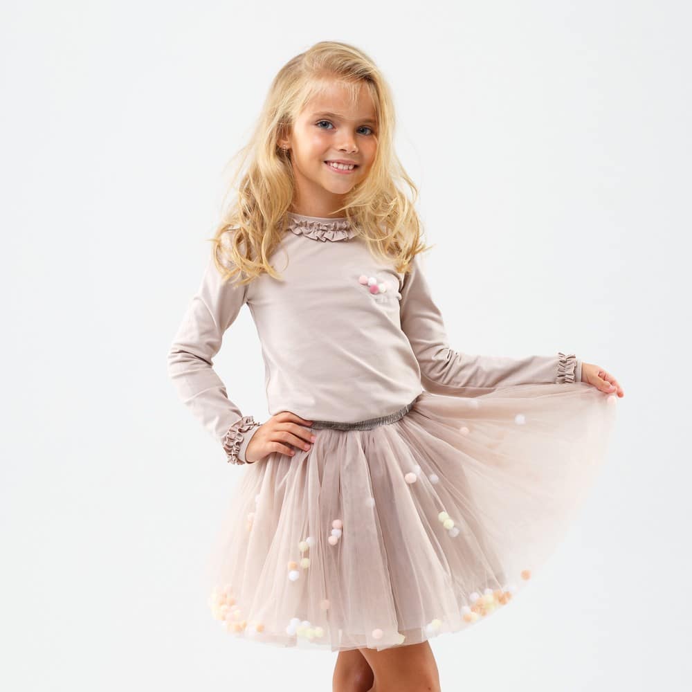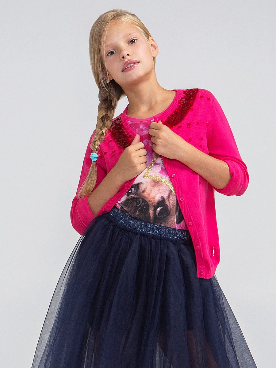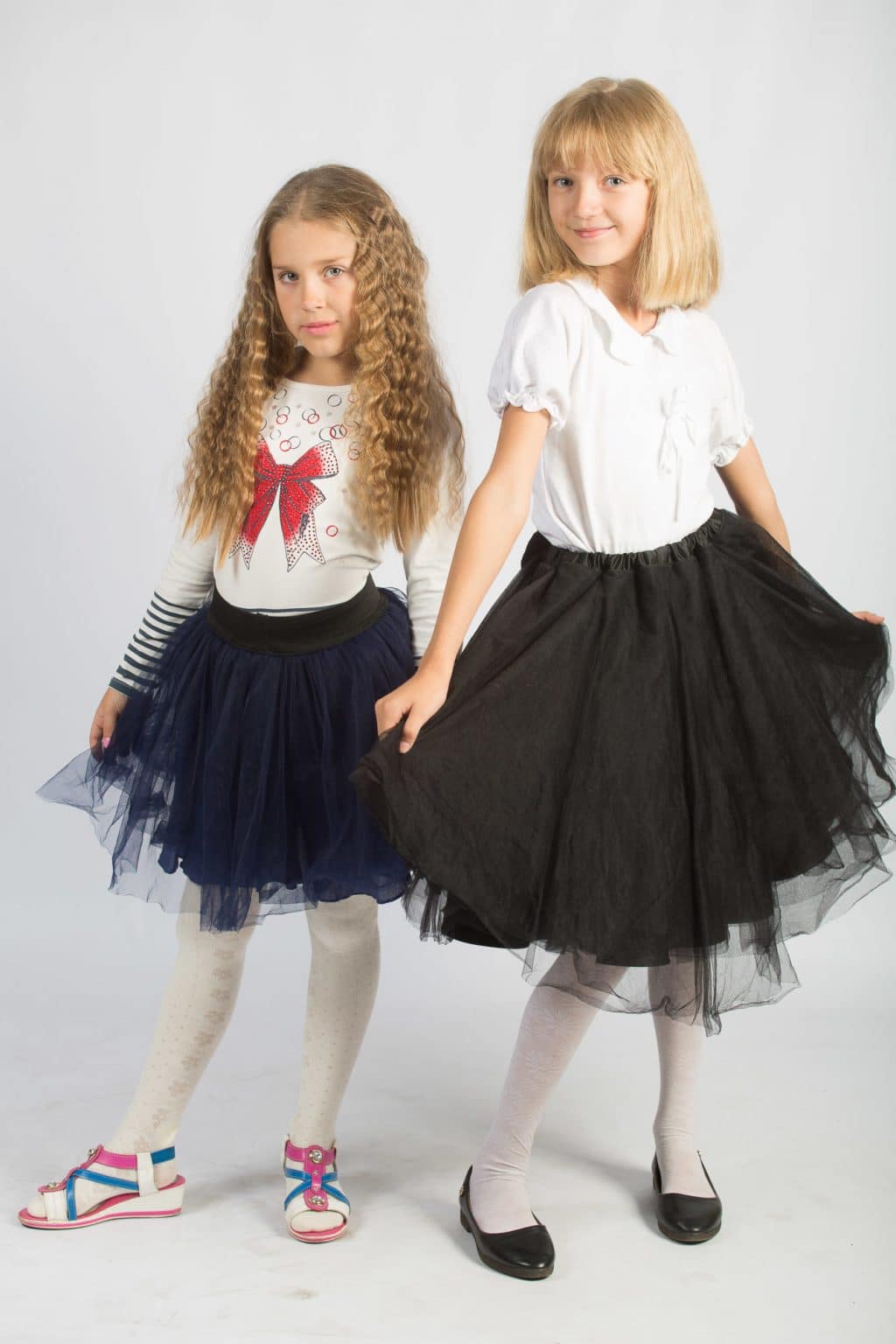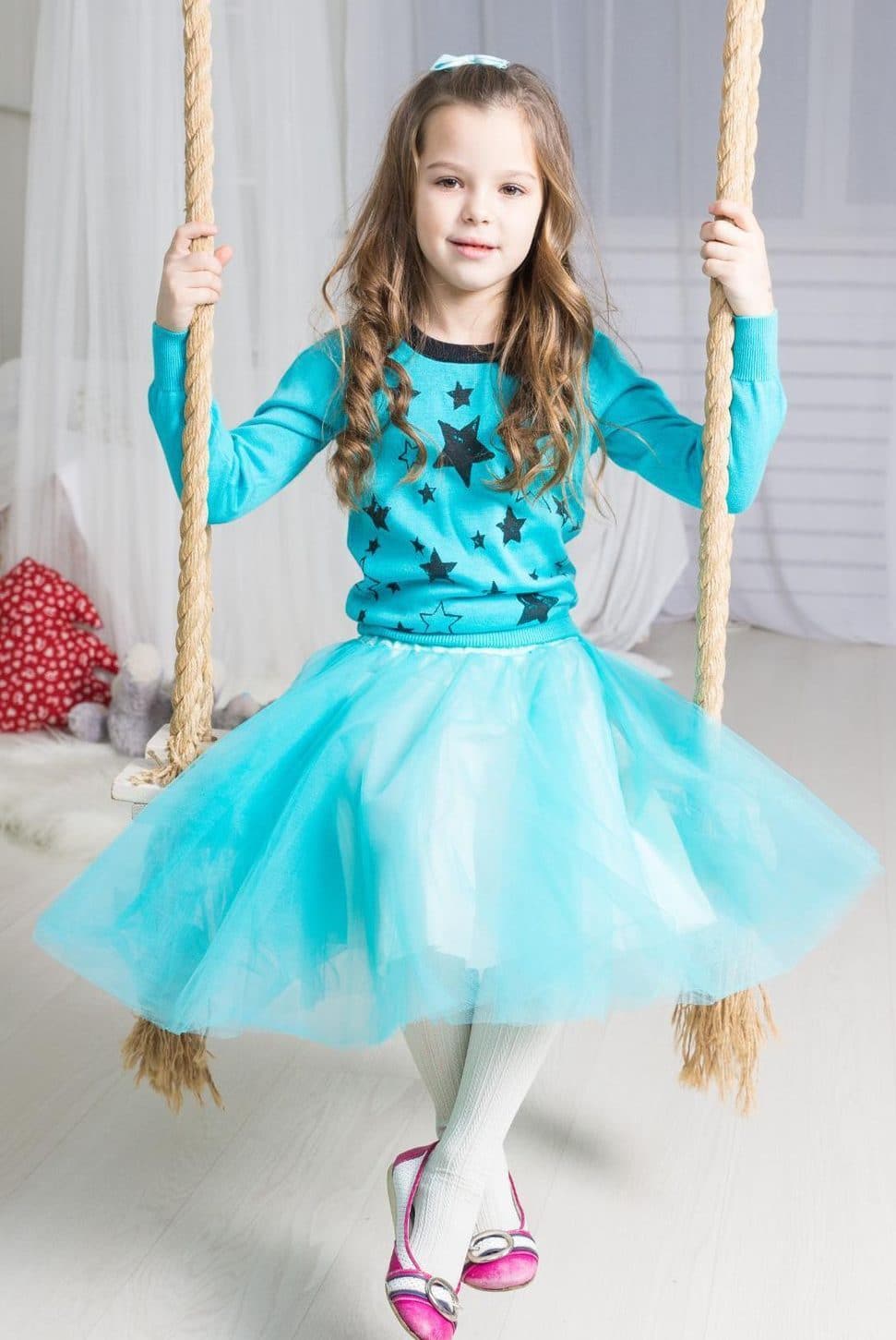 Girls from kindergarten accustomed to ball gowns are happy to wear tulle skirts in everyday life. For example, complementing the skirt with a T-shirt or sweatshirt with a pattern that should be close in color to the color of the skirt.