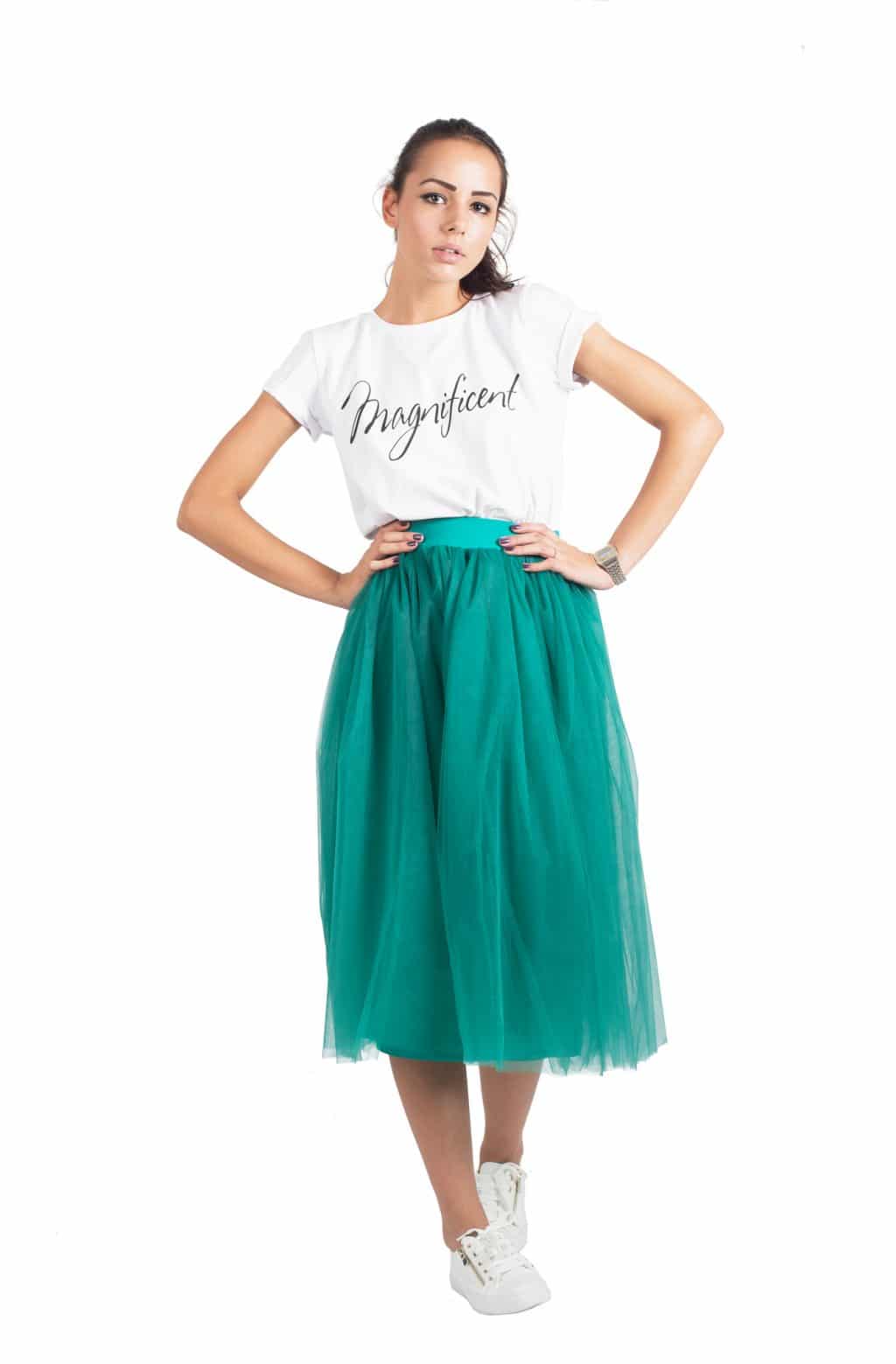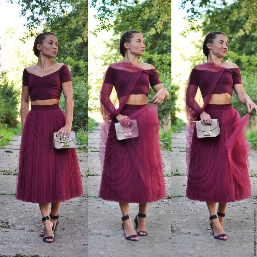 Nowadays, it has been increasingly used when sewing clothes. The well-known tulle skirt is a tutu, but in everyday life it is not very convenient to wear. And the designers began to increase the length due to what they created, an unlimited number of images. What our fashionistas could not fail to note, since tulle skirts are light, airy, do not constrain movement and go well with clothes.