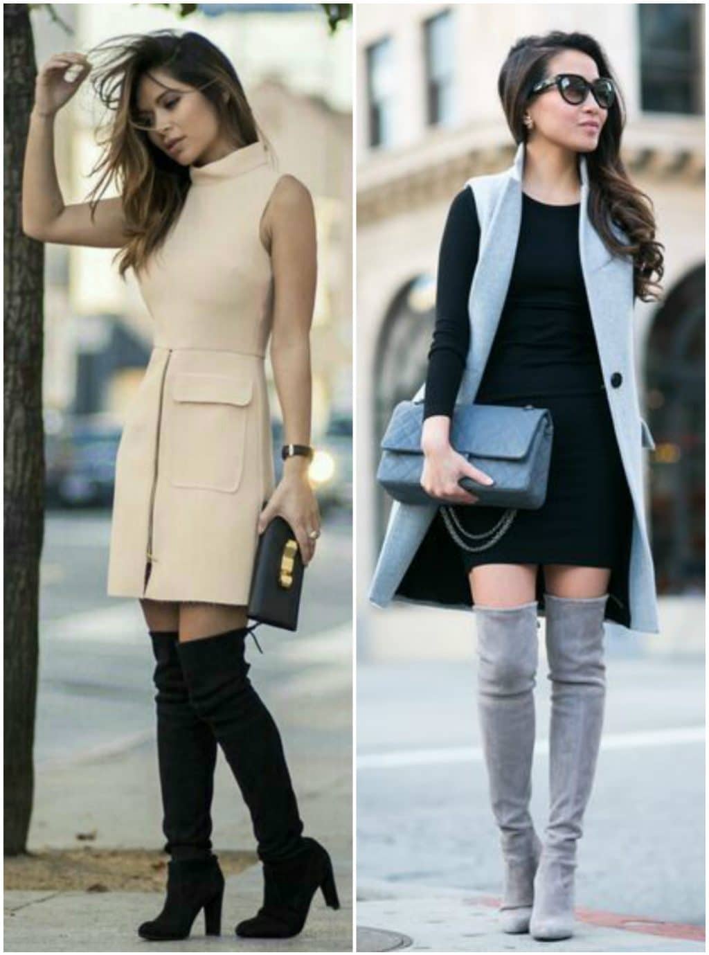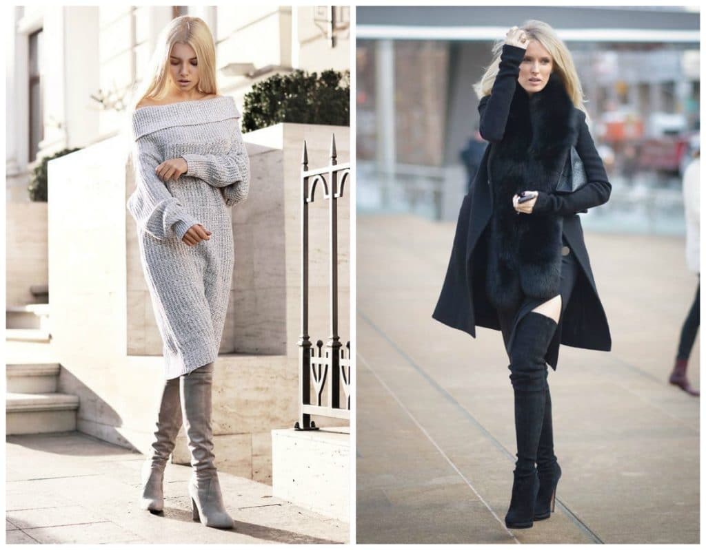 A chic, expensive look can be achieved with high, suede or leather over the knee boots. In these boots you will be in the spotlight, because they simply personify quality and high cost.