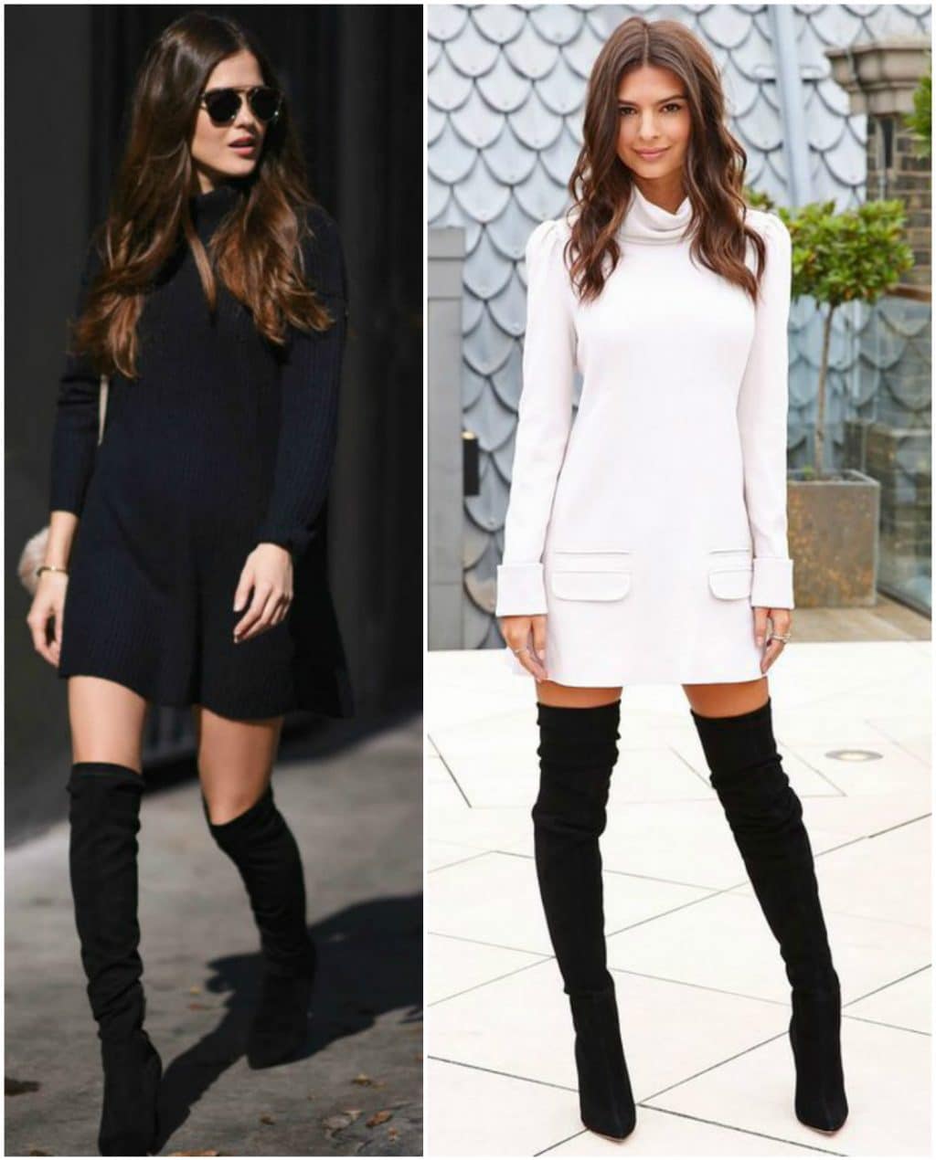 A very suitable choice for the autumn-spring season. It’s worth choosing a warm dress made of thick fabric under the botiolas, and you can put on a jacket, cardigan or jacket over it.