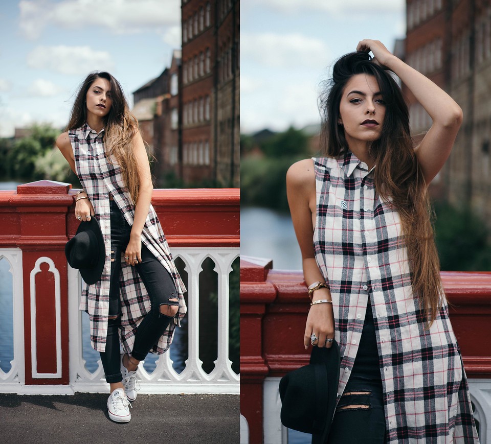 A romantic image will help you create a shirt in a floral print or a shirt that exposes your shoulders. You can complement the look with a long denim vest and a hat.
