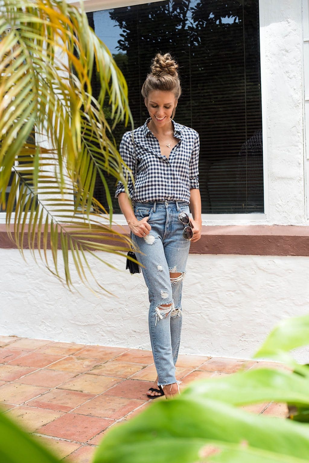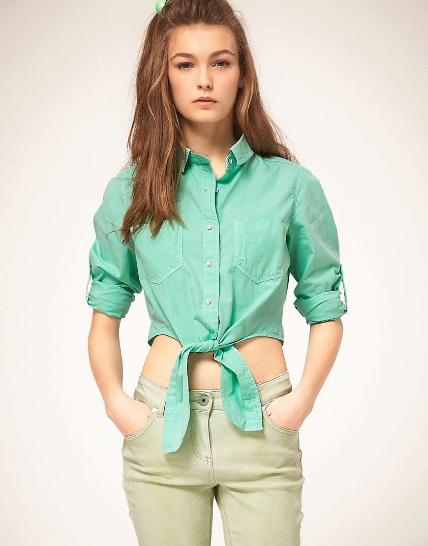 You can achieve a bold, mischievous style by tying a shirt around your waist or hips.