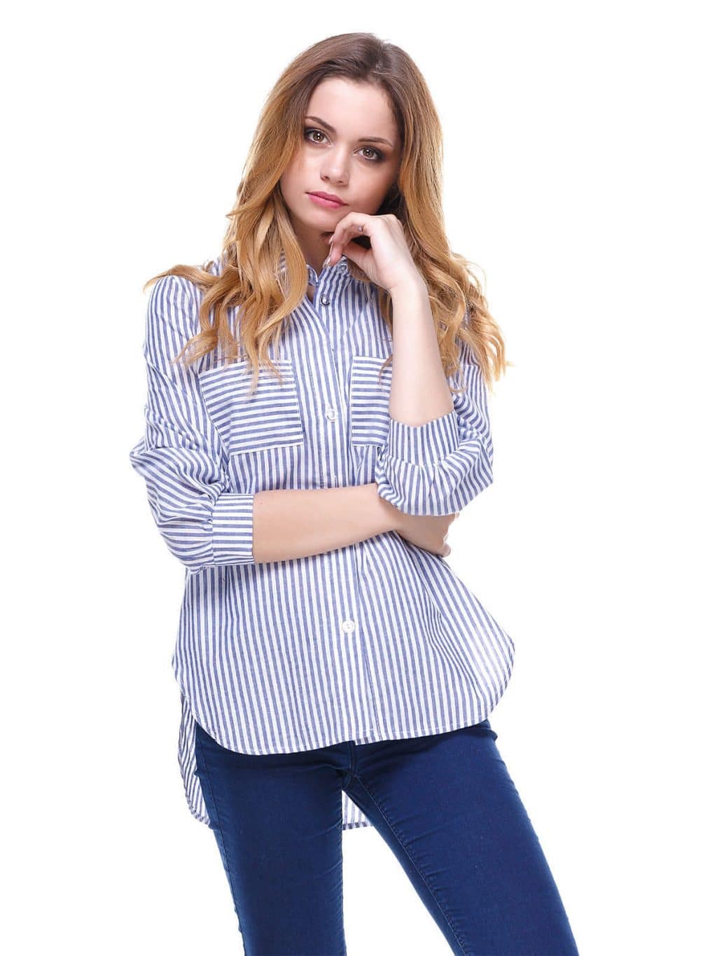 Shirts are usually worn by young girls. The shirt in this case is selected by a more elongated model, where the lower button is on the edge of the hem.