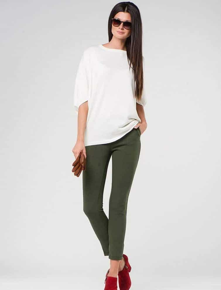 In this case, there is certainly a place where you can take your fantasies. Here you can safely combine bright, colorful T-shirts, blouses, sweaters or even sweaters with dark or colored trousers.