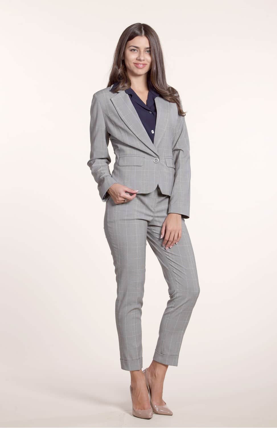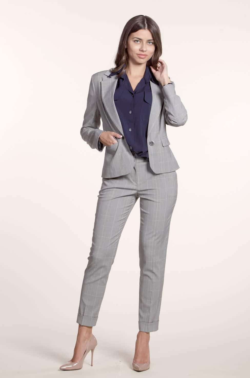 A good option for working in the office are cropped trouser models. To such trousers you can choose a vest or jacket in the color of the trousers themselves. And on your feet an ideal solution would be to put on pumps.
