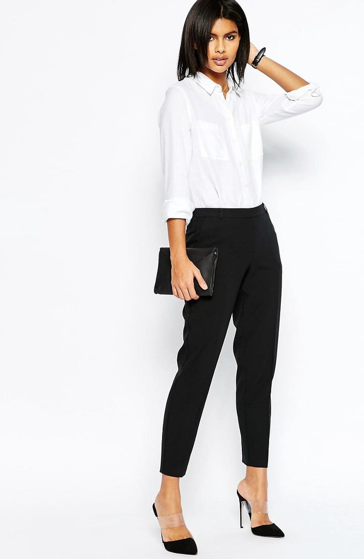 Perhaps the best combination is the light colors of your top and dark trousers. This will help you create a classic contrast of colors between white and black. This classic has been tested over the years and has not lost its relevance so far.