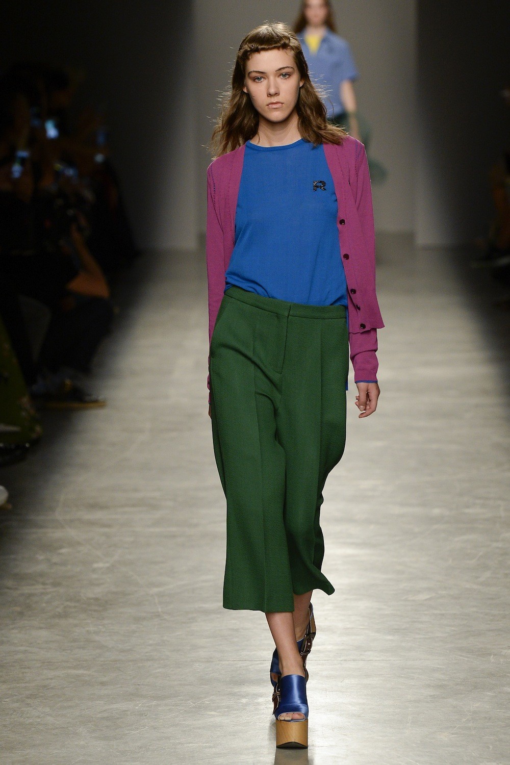 Cropped trousers and a color top