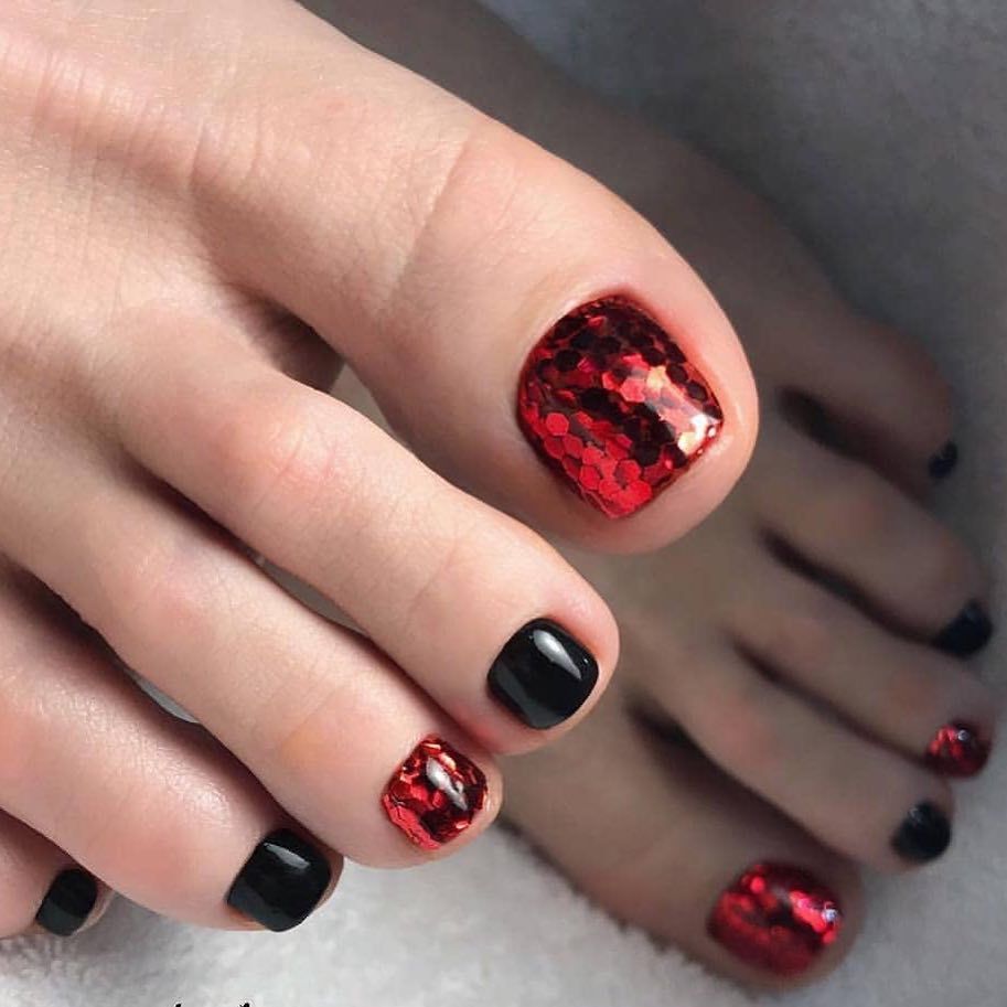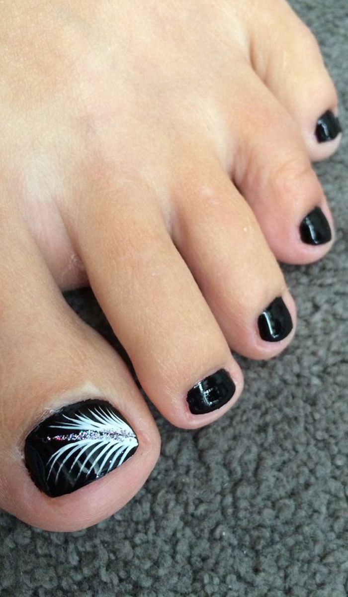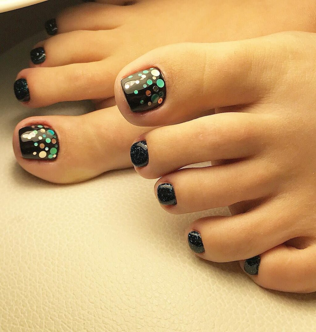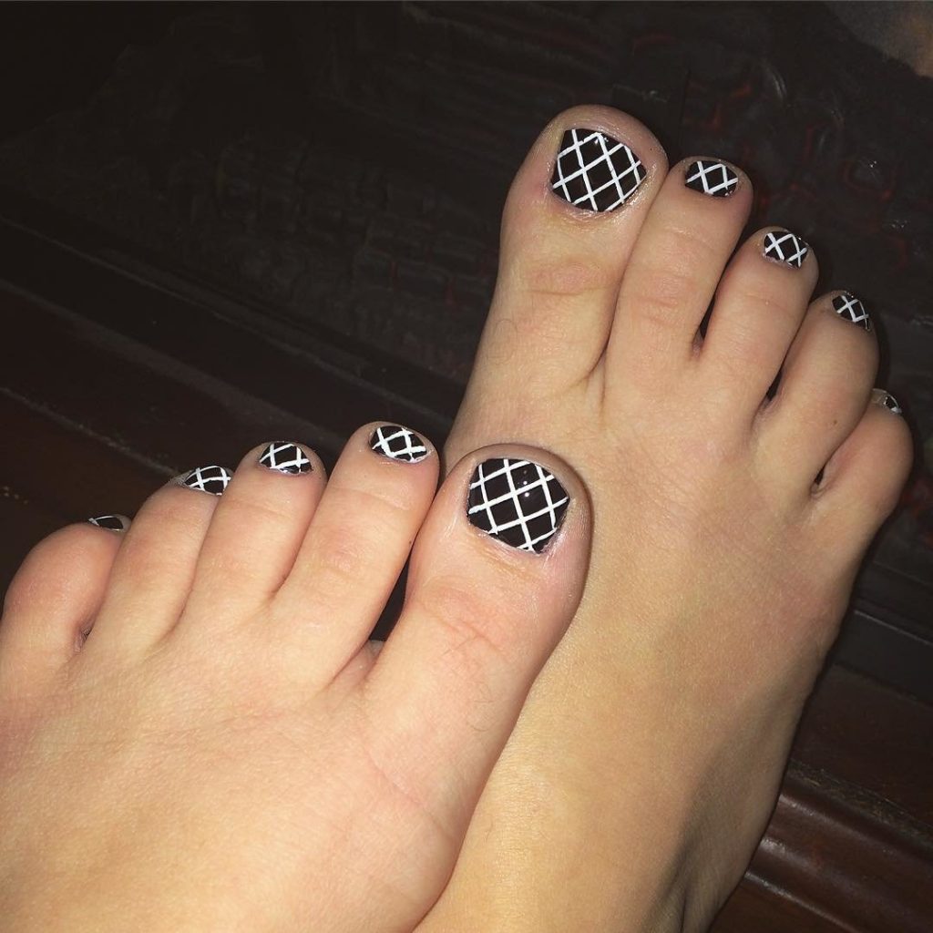 Any design will look gorgeous on a black pedicure. Black will emphasize all design elements even more. It can be various patterns, dots, stickers, cubes, cage.