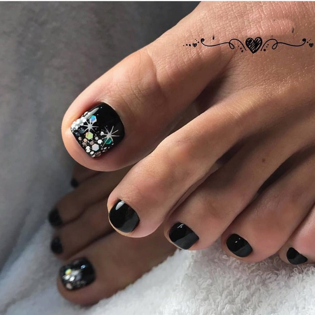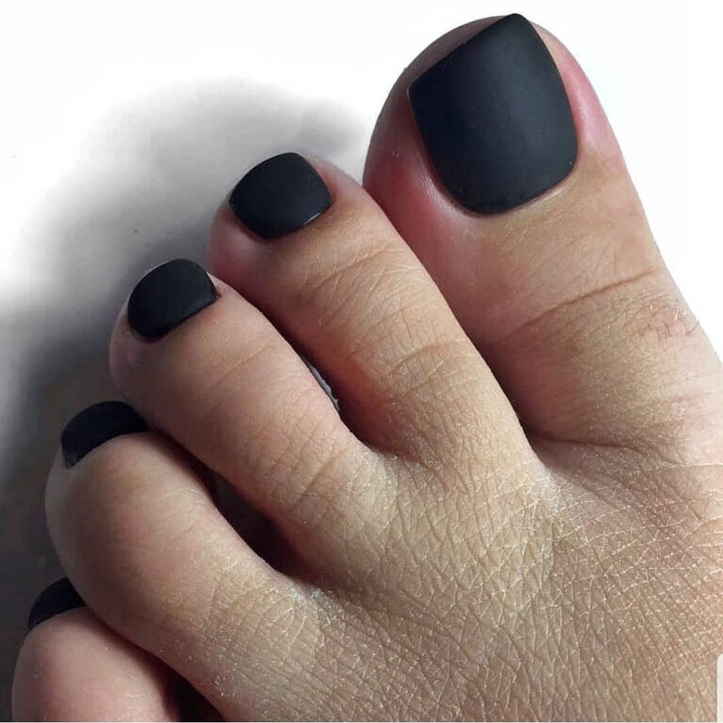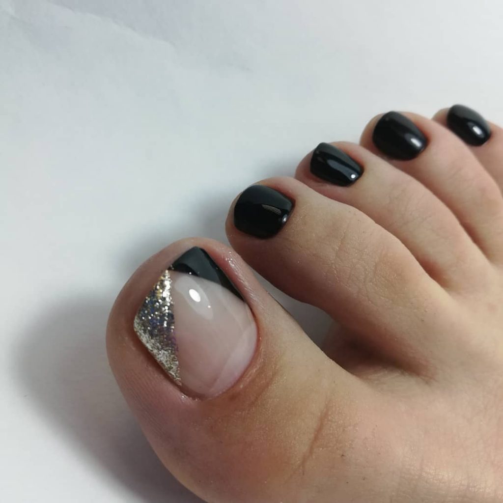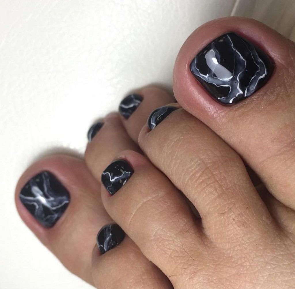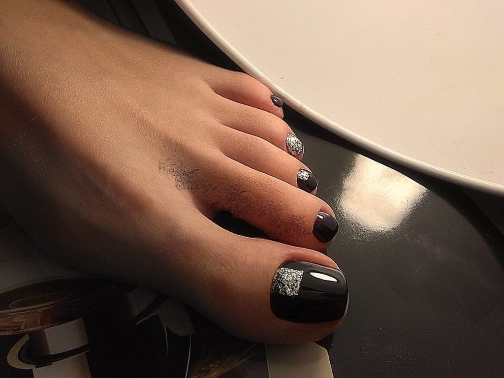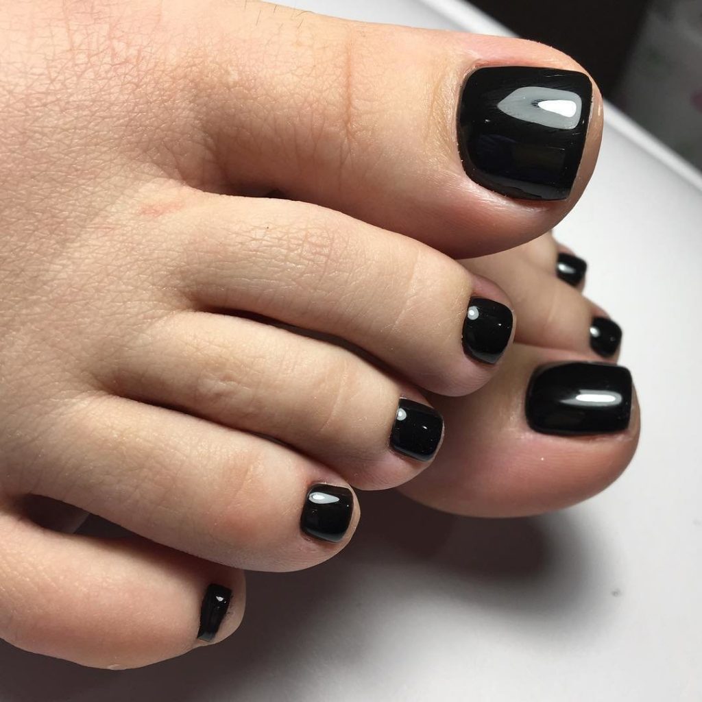 The main thing is not to forget that with a black pedicure you should do a neat and perfect treatment of the feet and nails.
