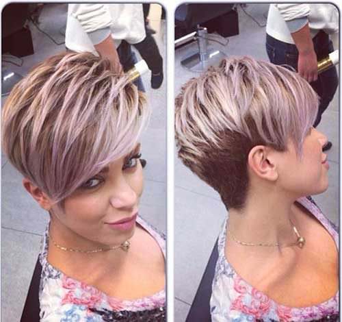 Pixie-style short haircuts are simply created for radical coloring. Simply paint a few strands in bright colors and you get a fashionable and unique hairstyle. Too bright for you? Not a problem, use layering of flowers, this will not only refresh your onion, but also increase the volume of hair.