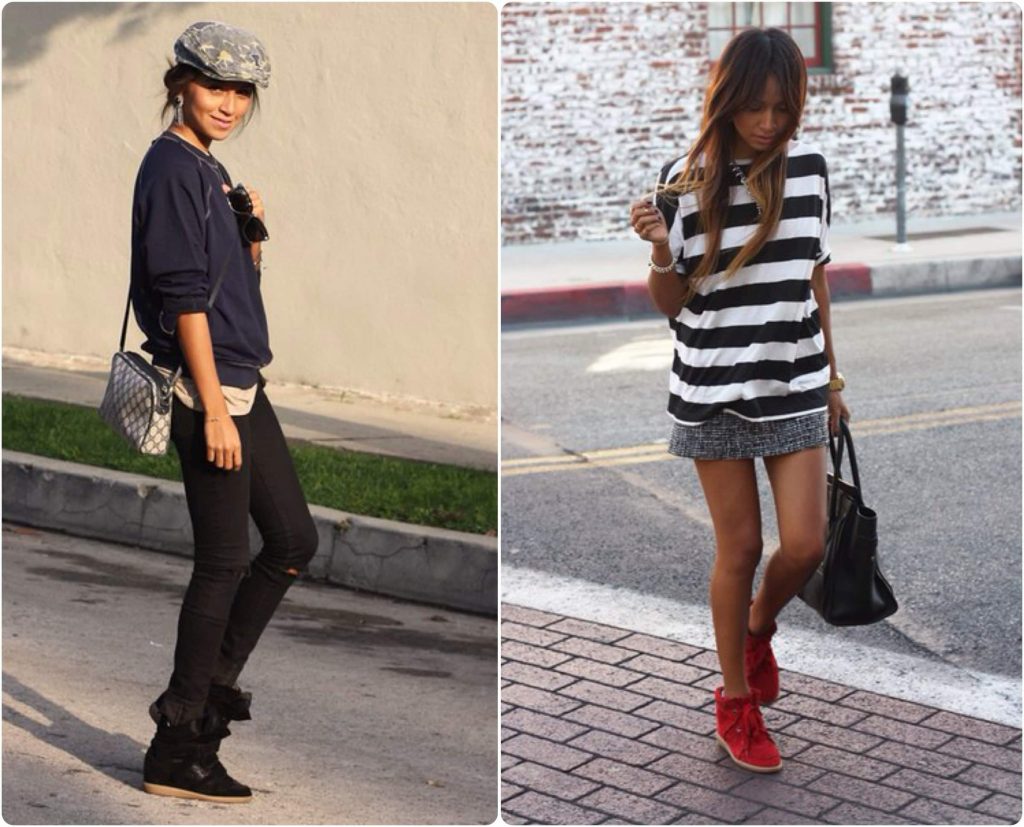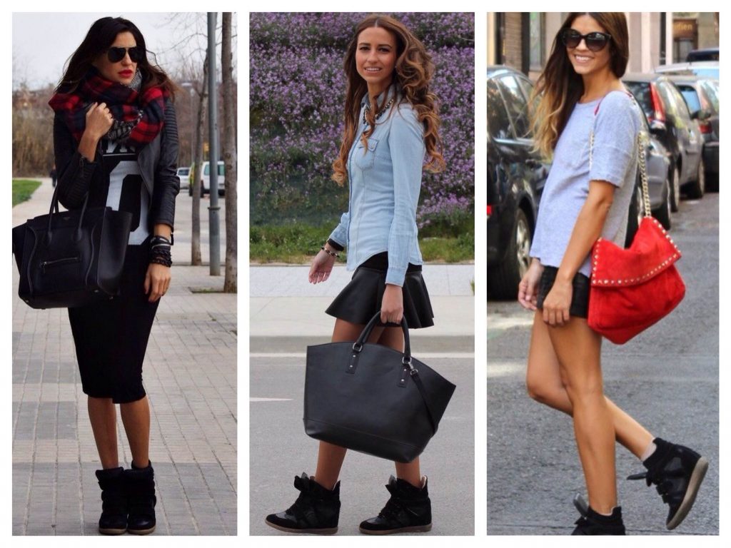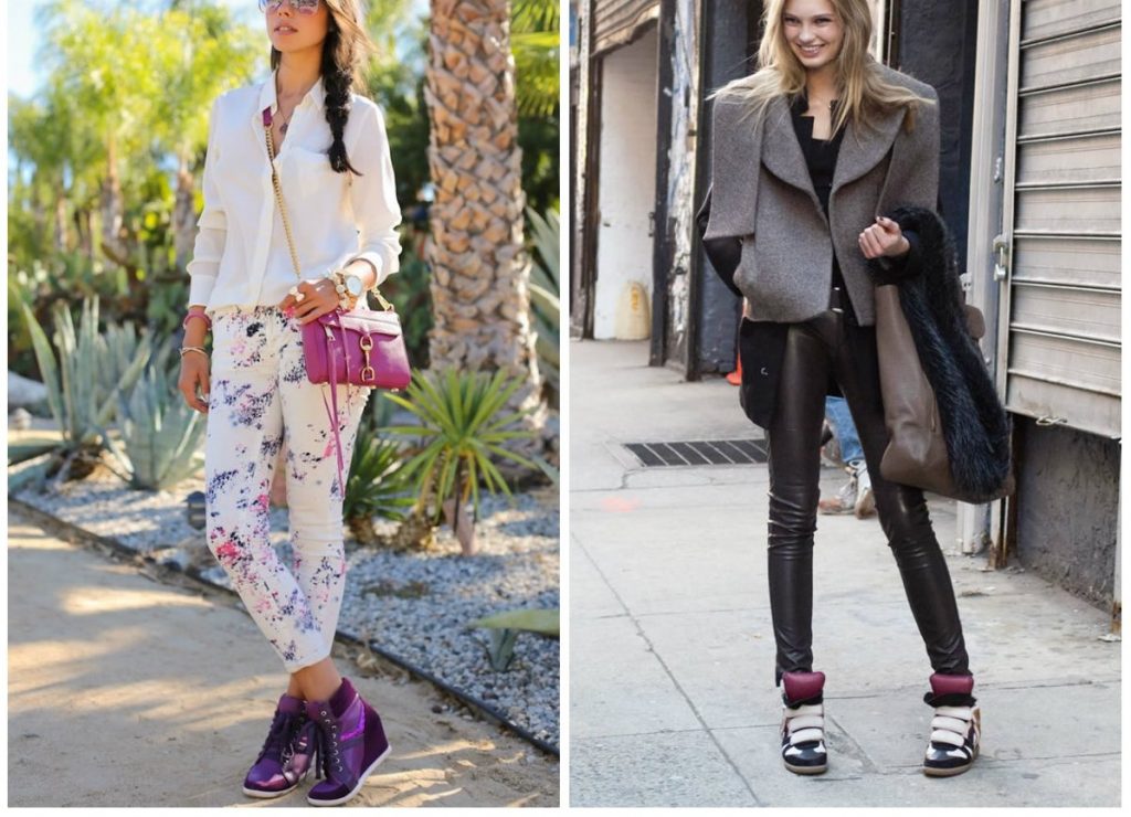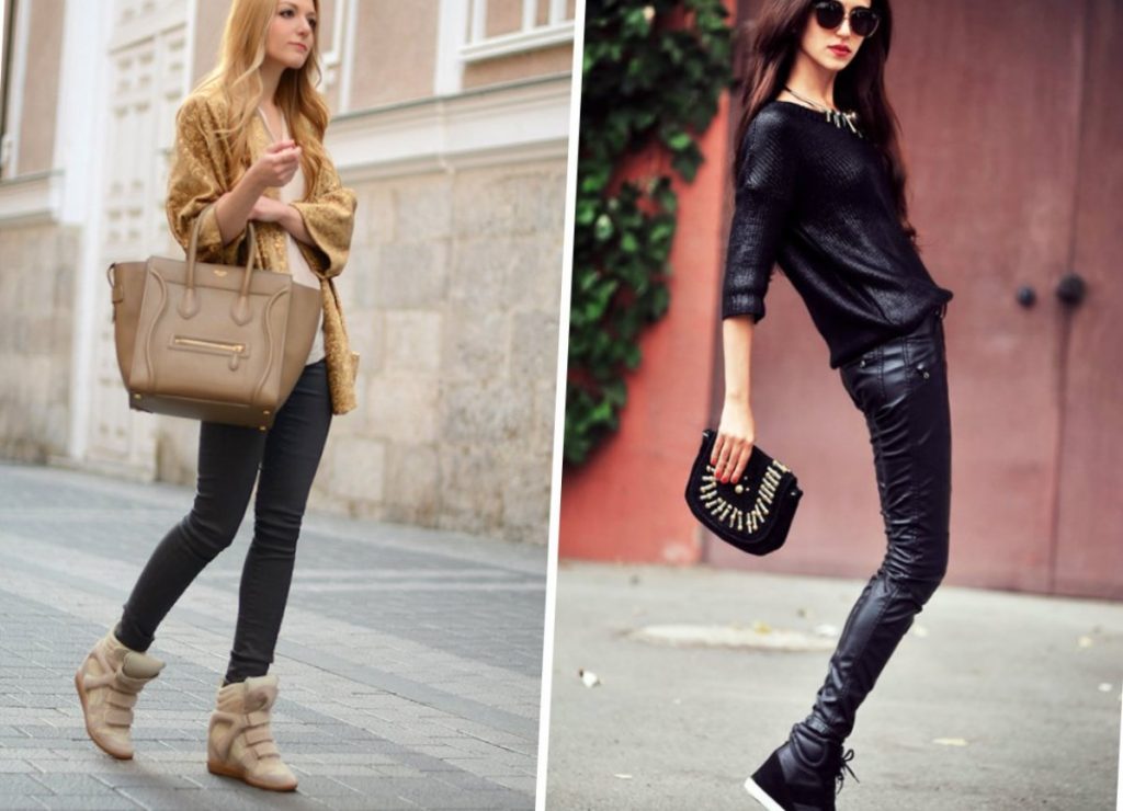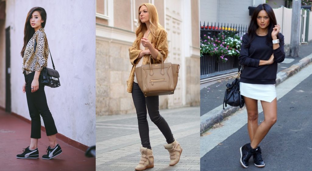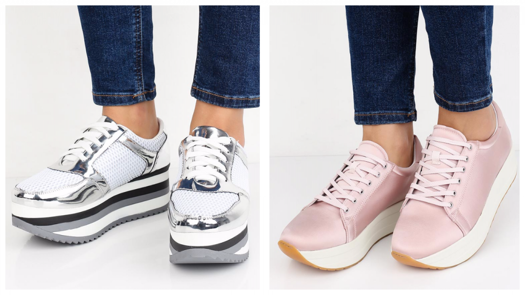 Such sneakers exist in different variations. In the first embodiment, the platform may be over the entire area of the foot. And in the second, the platform elevation goes only from the middle of the foot to the heel. In the first case, it will look rather rough and massive, in the second, gently and elegantly.