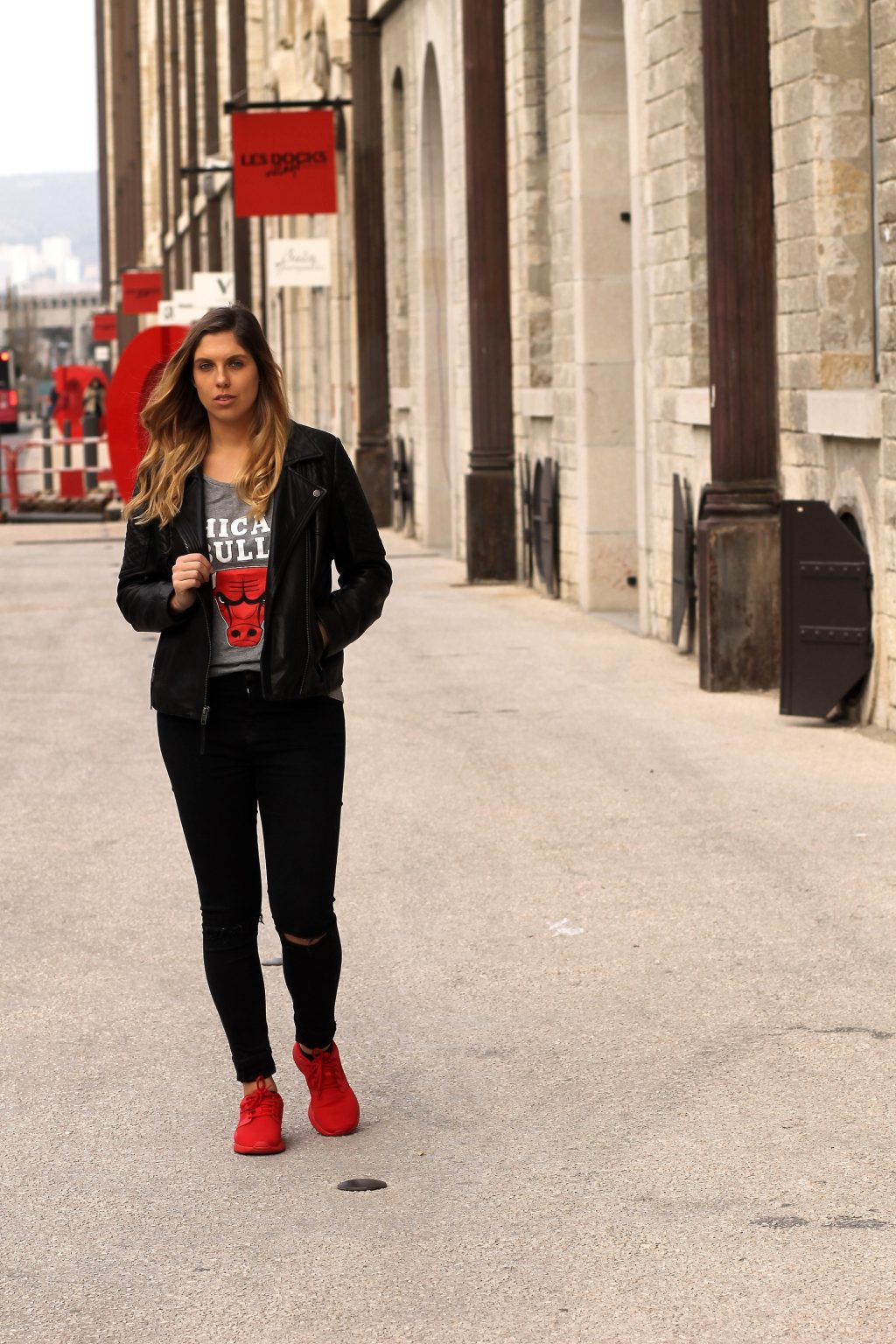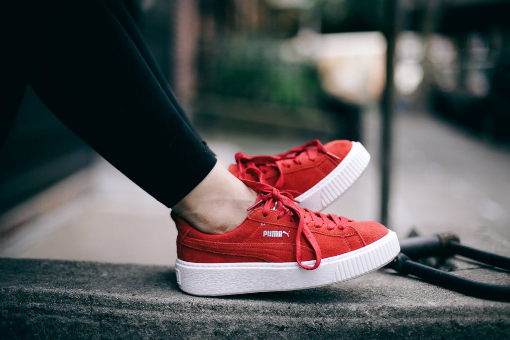 Red sneakers are great for short, denim shorts. Red goes well with denim, so any things from this fabric will look harmonious with red sneakers.
