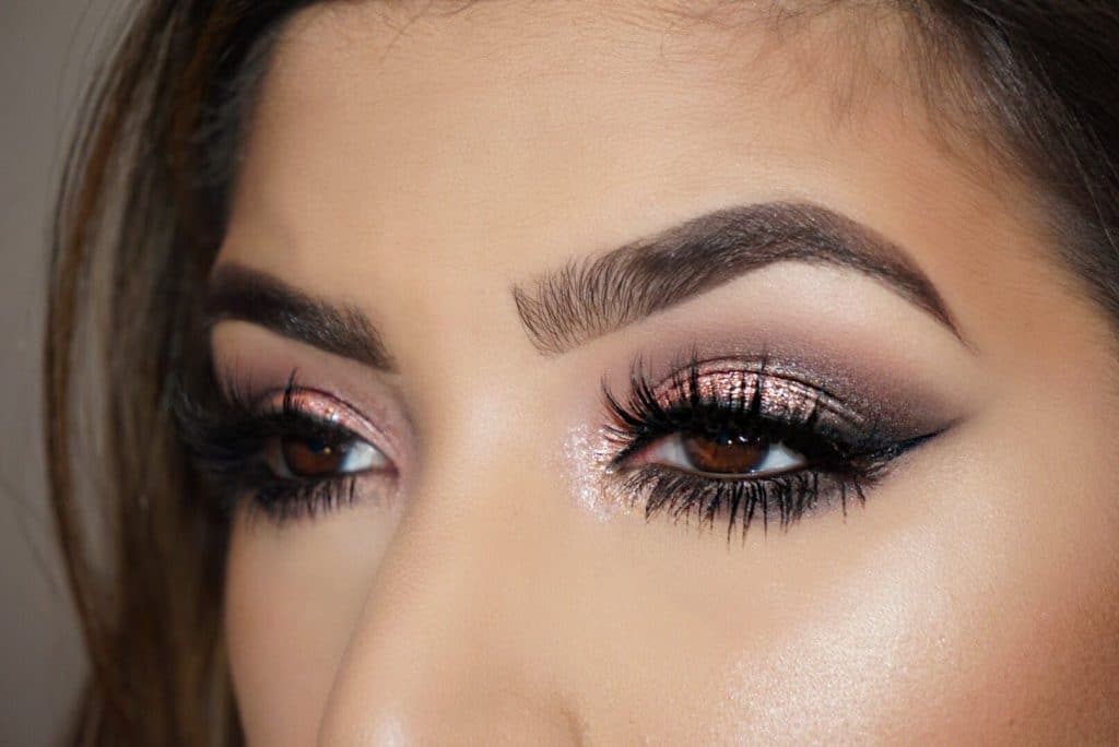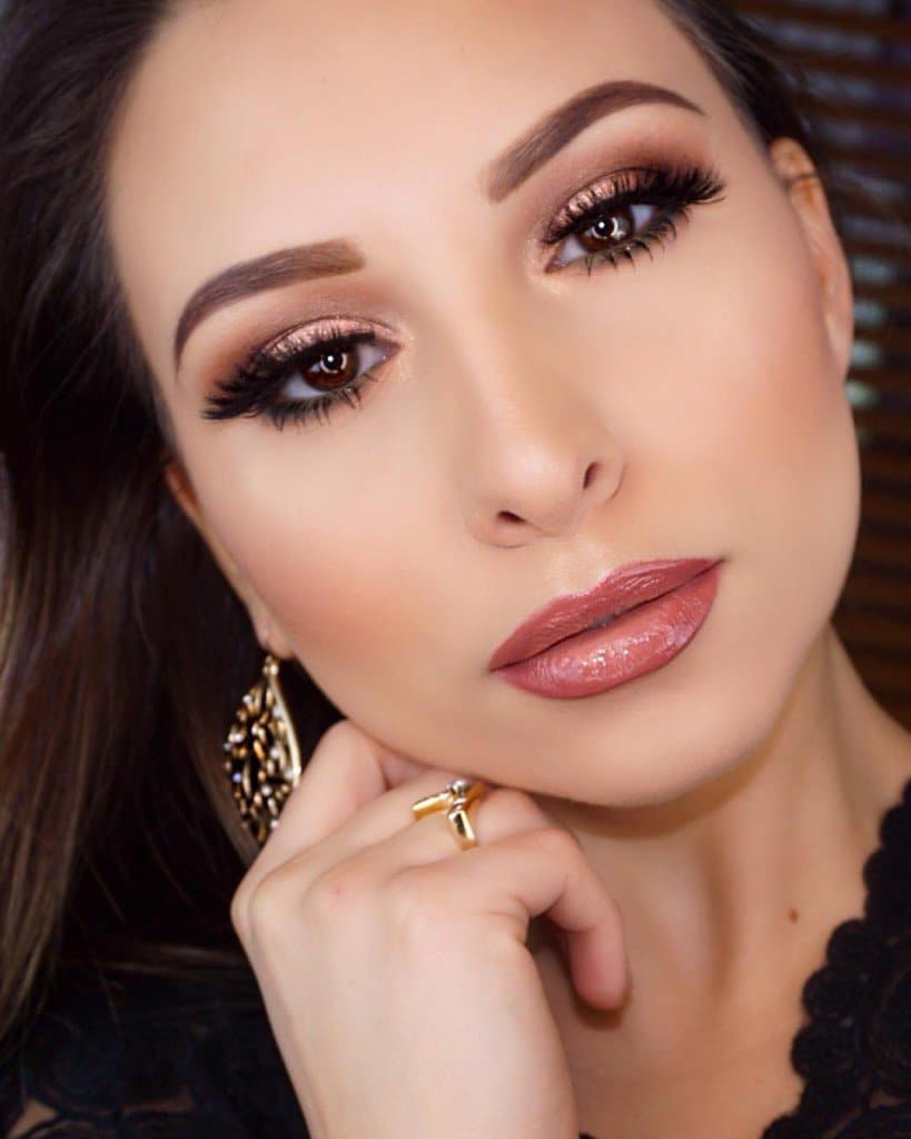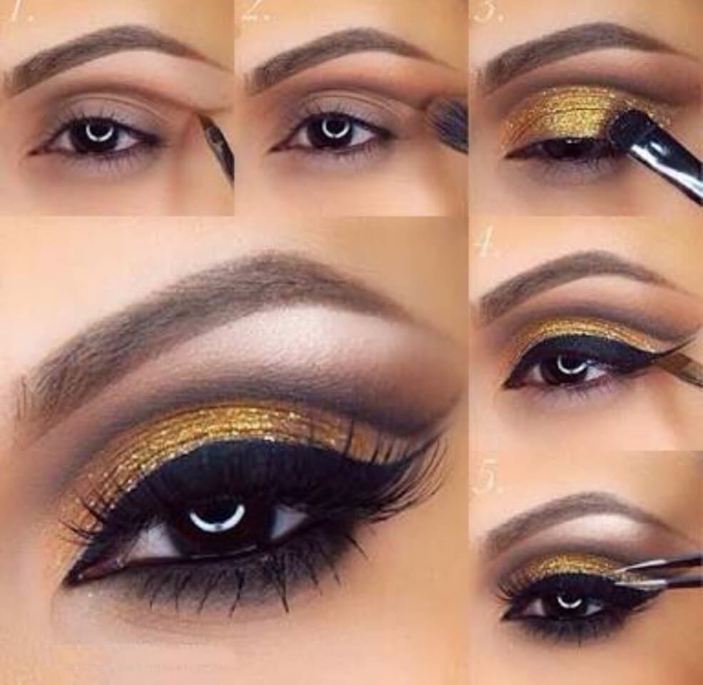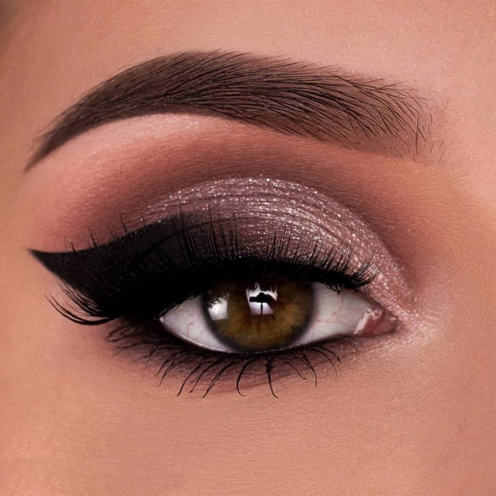 One of the most successful and spectacular types of makeup for brown eyes will be the option with golden shades. It can be just shadows with a slight golden tint or a golden pigment that you can apply on top of any shadows, and your makeup will take on a completely different look.