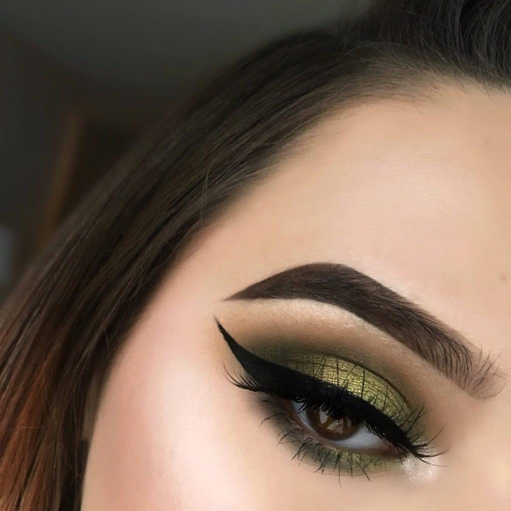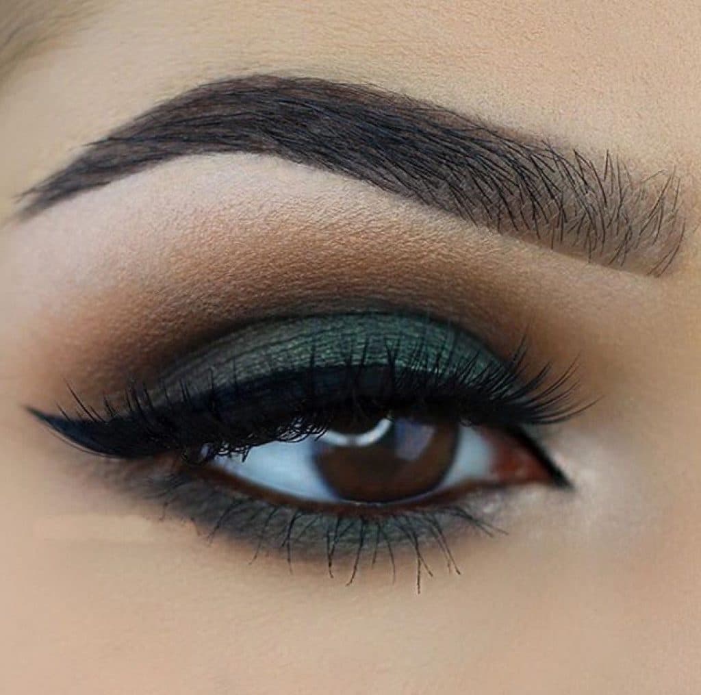 With green make-up, brown eyes will take on a feline playful look. It will be beautiful with rich brown eyes, and if there are flashes of green in the brown color, it will be even more spectacular.