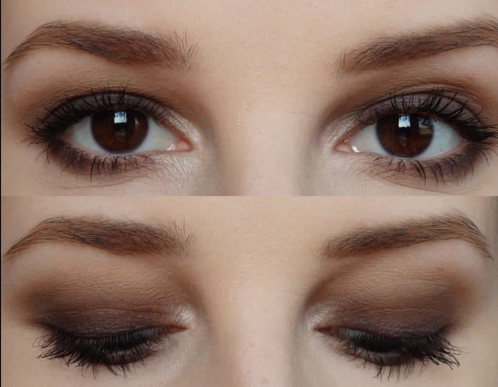 Basic and everyday makeup for brown eyes is a make-up in brown shades. In such a make-up, light shades are usually applied to a moving eyelid, such as beige, white, light brown. And the outer corner of the eye is darkened with deeper brown shades.