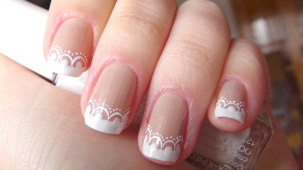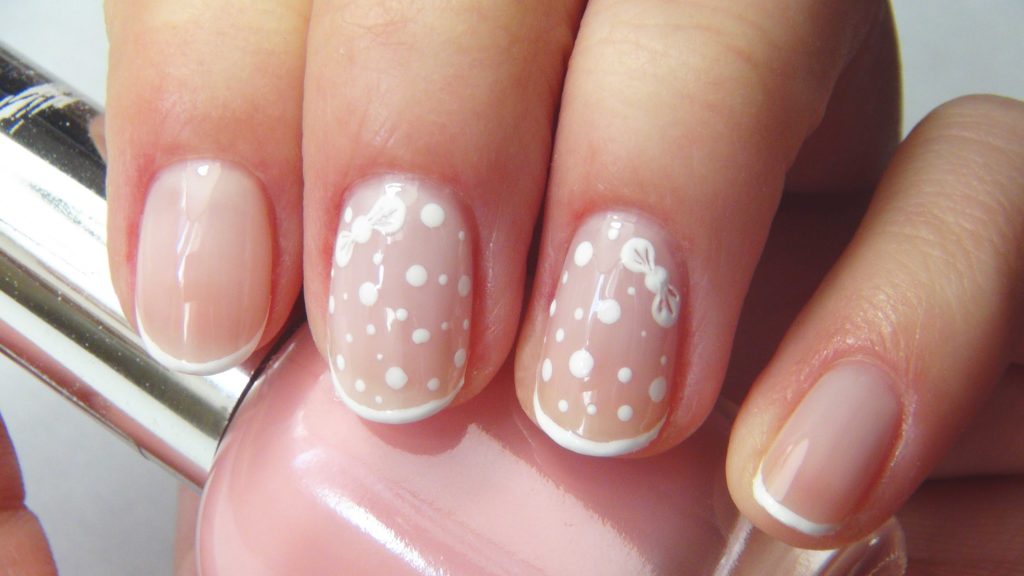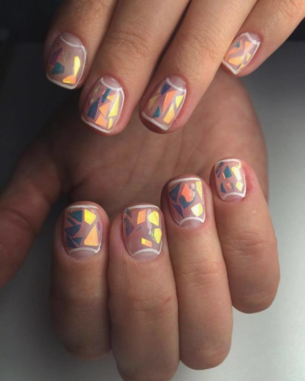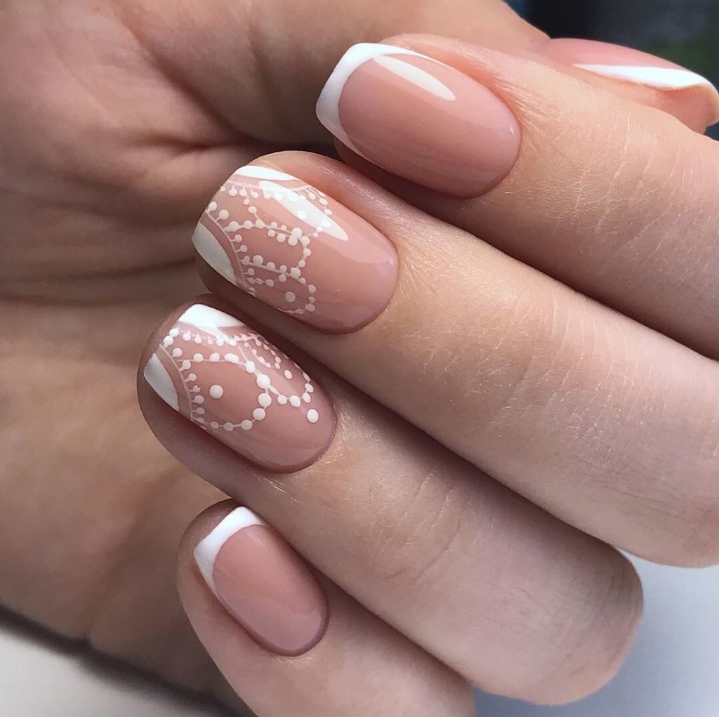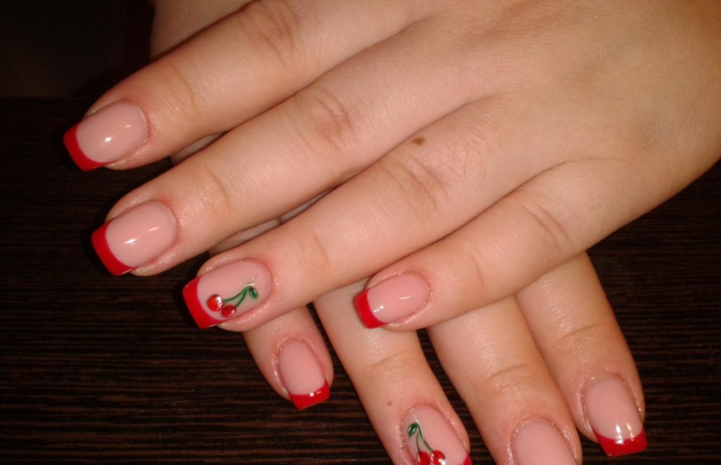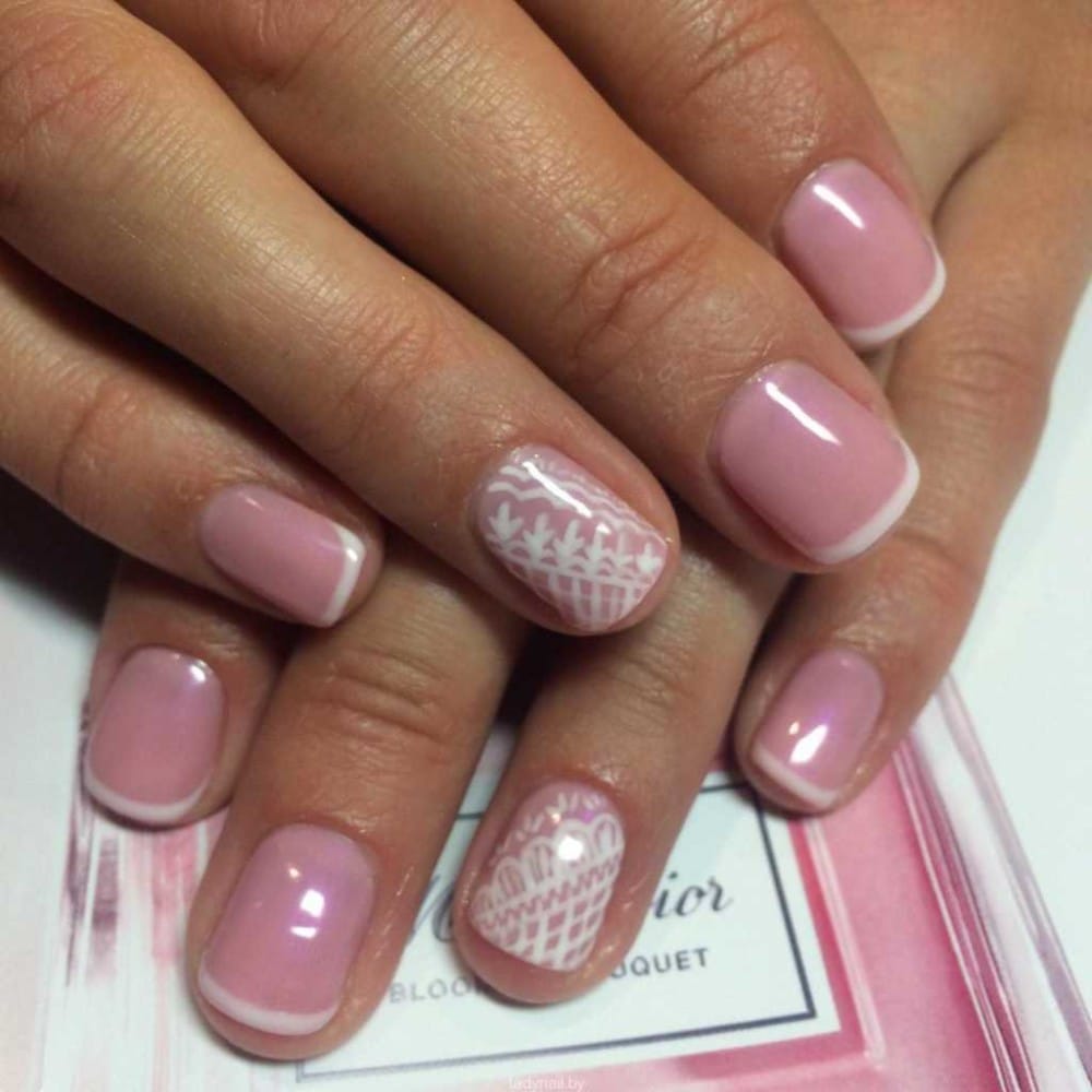 If the nails are short, transparent manicure will help to hide this flaw. Unlike a color design that creates borders, and emphasize length. If you make a thin line as in a french along the edge of the nail, this will visually give it a length. Do not draw large patterns, it will look ridiculous on short nails.