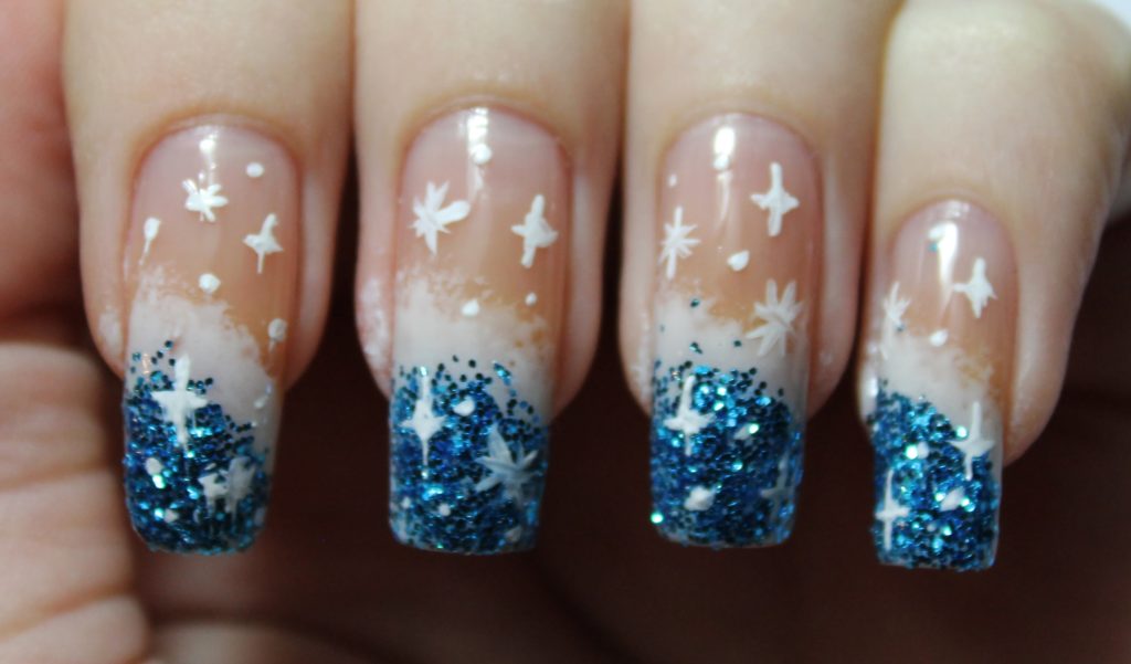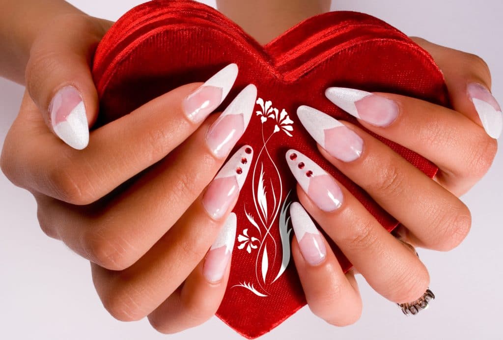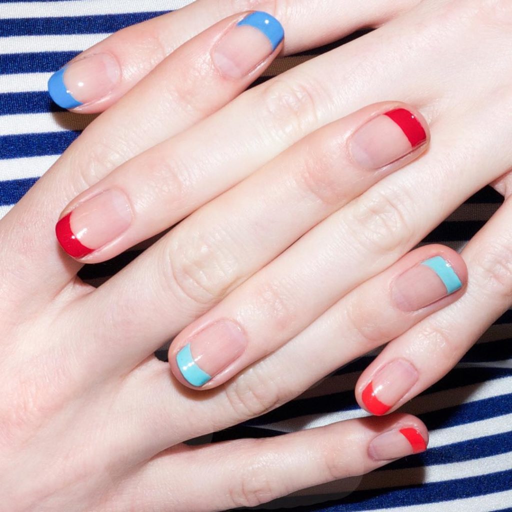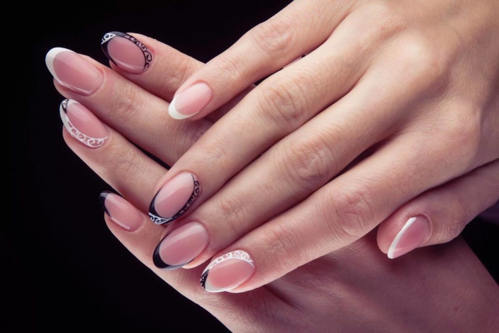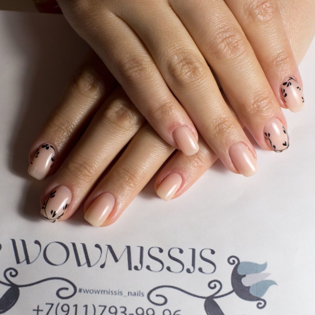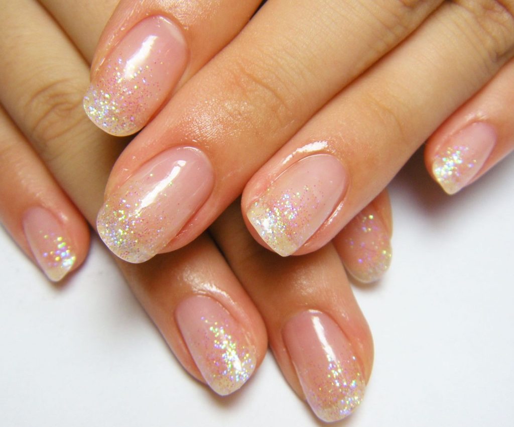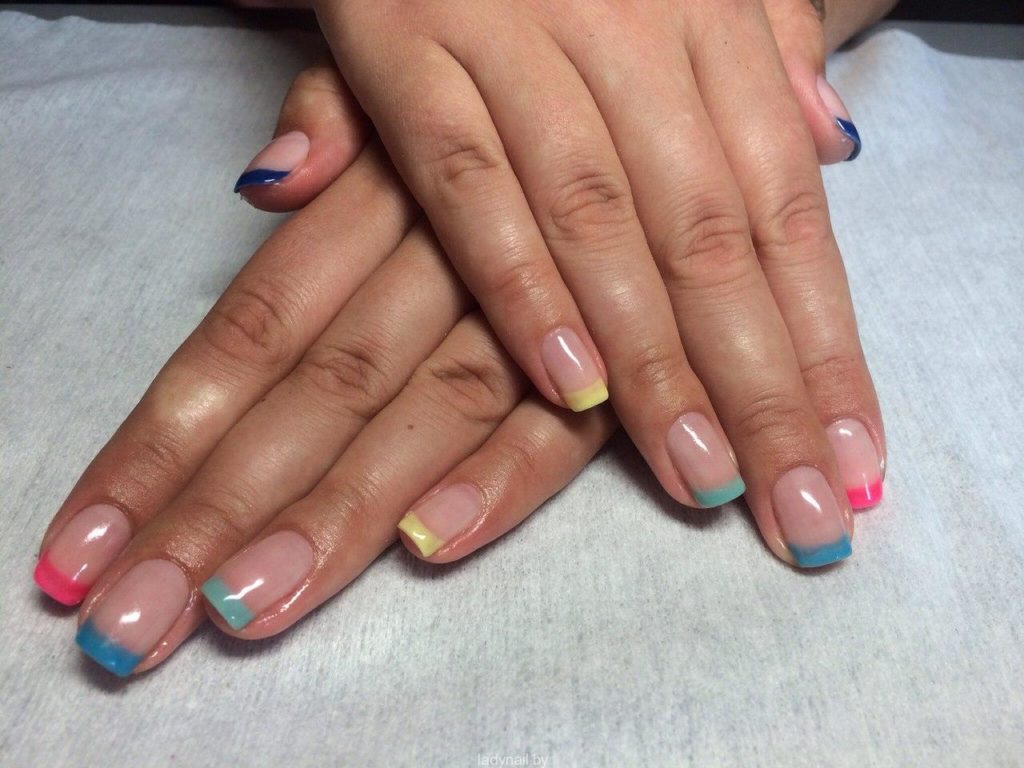 If the nails are short, transparent manicure will help to hide this flaw. Unlike a color design that creates borders, and emphasize length. If you make a thin line as in a french along the edge of the nail, this will visually give it a length. Do not draw large patterns, it will look ridiculous on short nails.