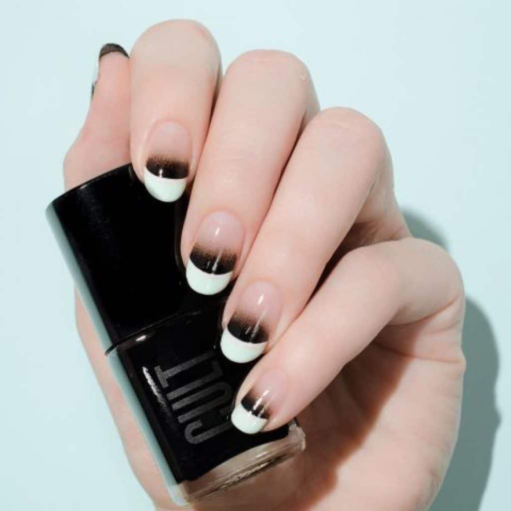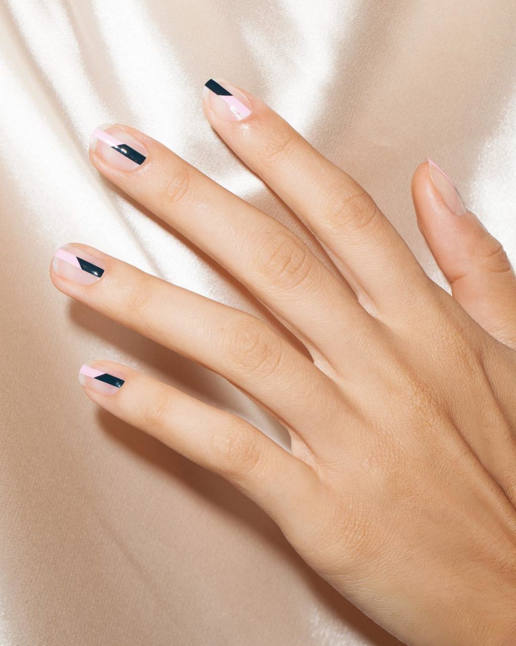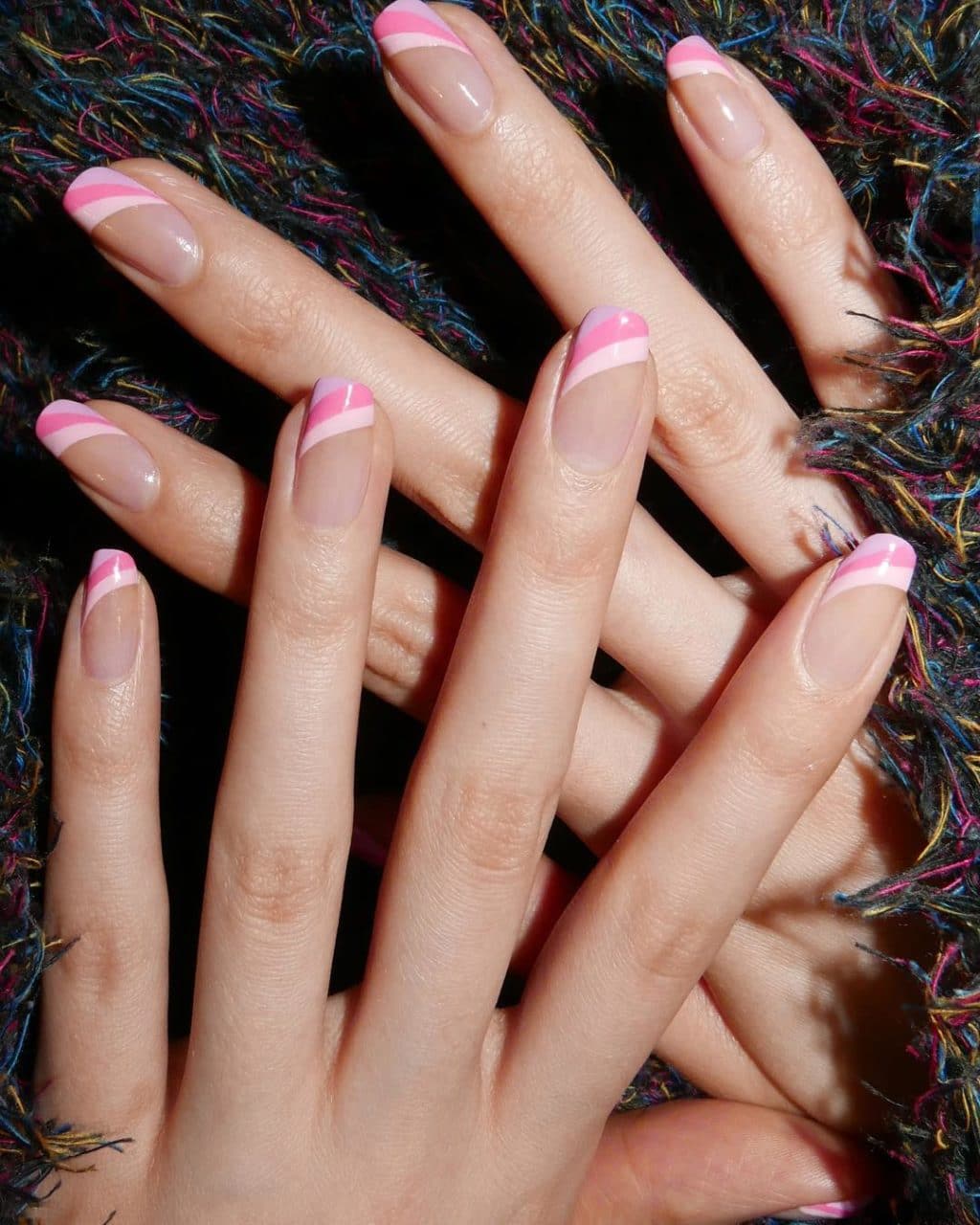They emphasize the beauty and tenderness of a transparent manicure. Now in fashion drawings geometric themes manicure. Therefore, experiment with the color of the lines, the classic is of course the white and black lines. But by diversifying the color, we will make the manicure brighter and more interesting. Remember that to draw in such a design you need only contrasting colors. If you want a bright manicure.