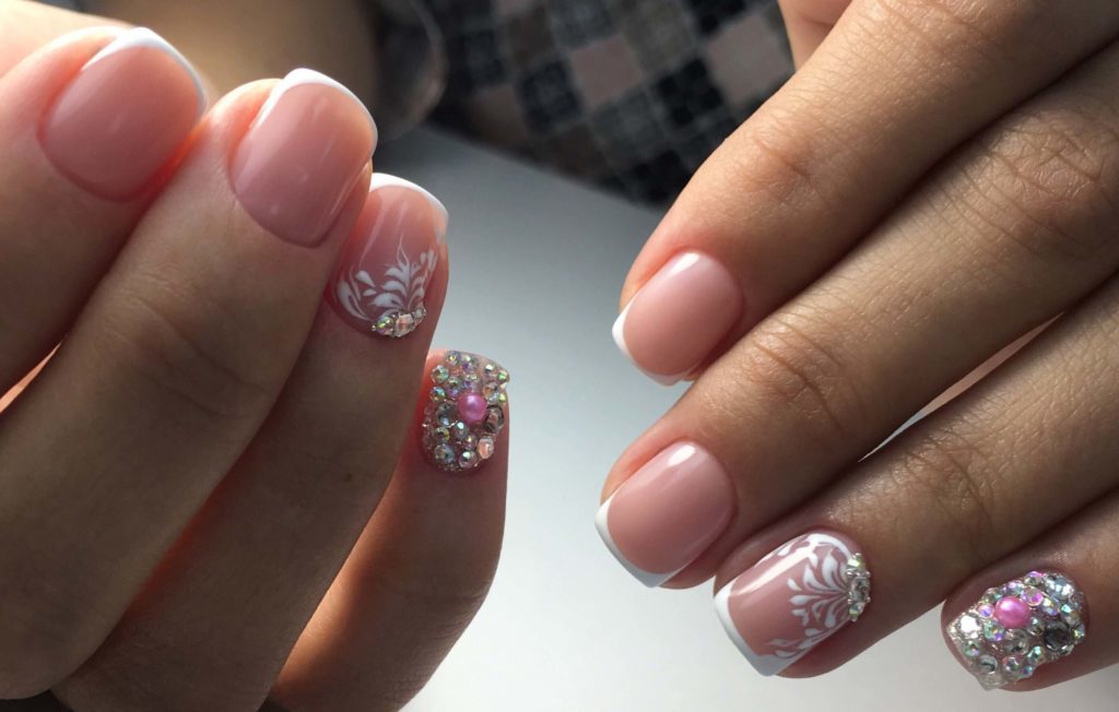 And, combining a transparent manicure with rhinestones, we get a discreet and elegant manicure. But it is worth remembering that a large number of crystals in this style is not permissible.