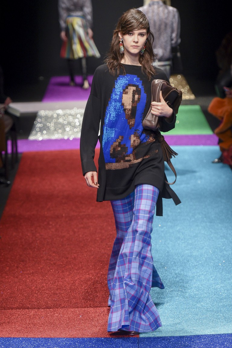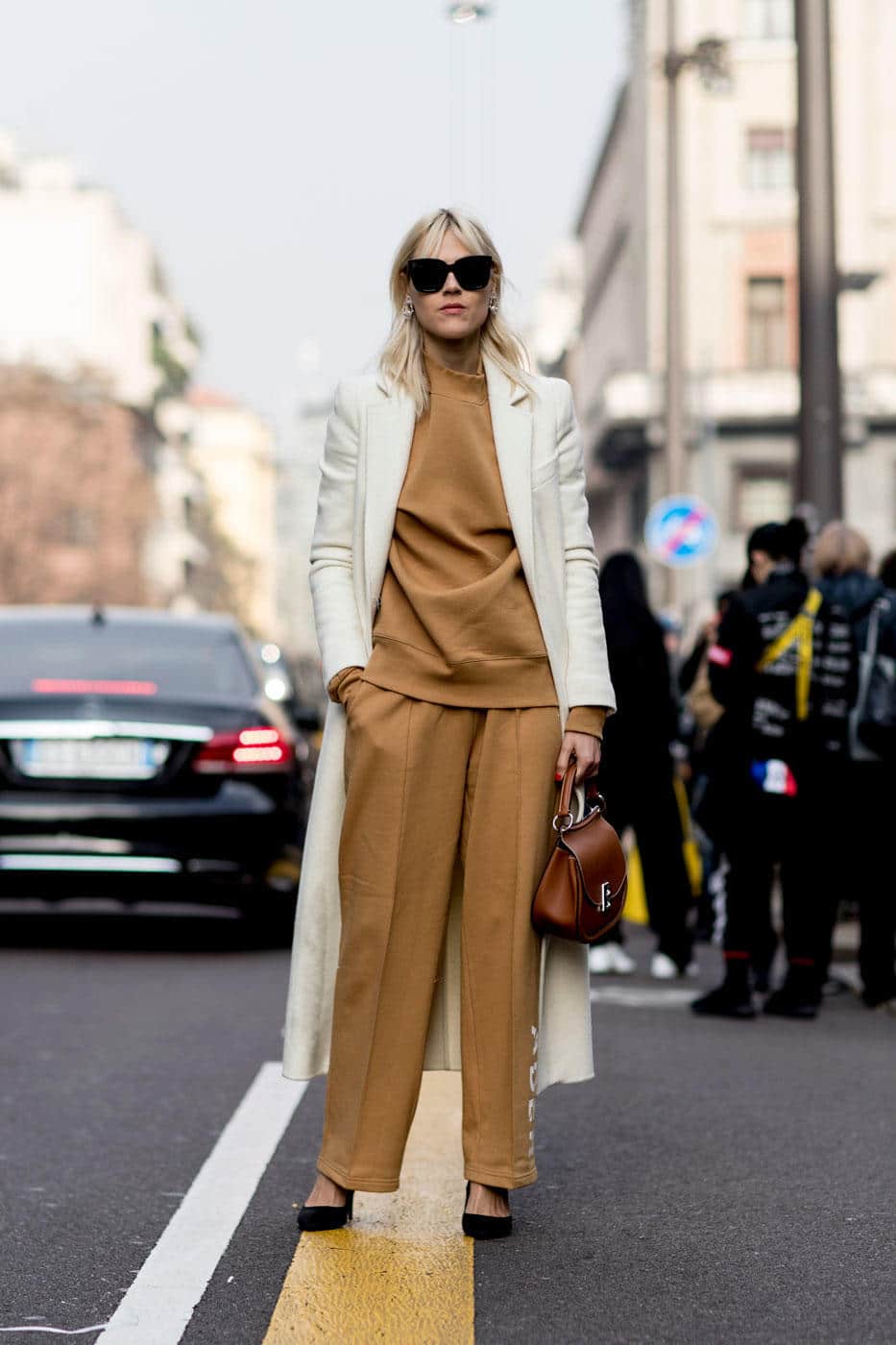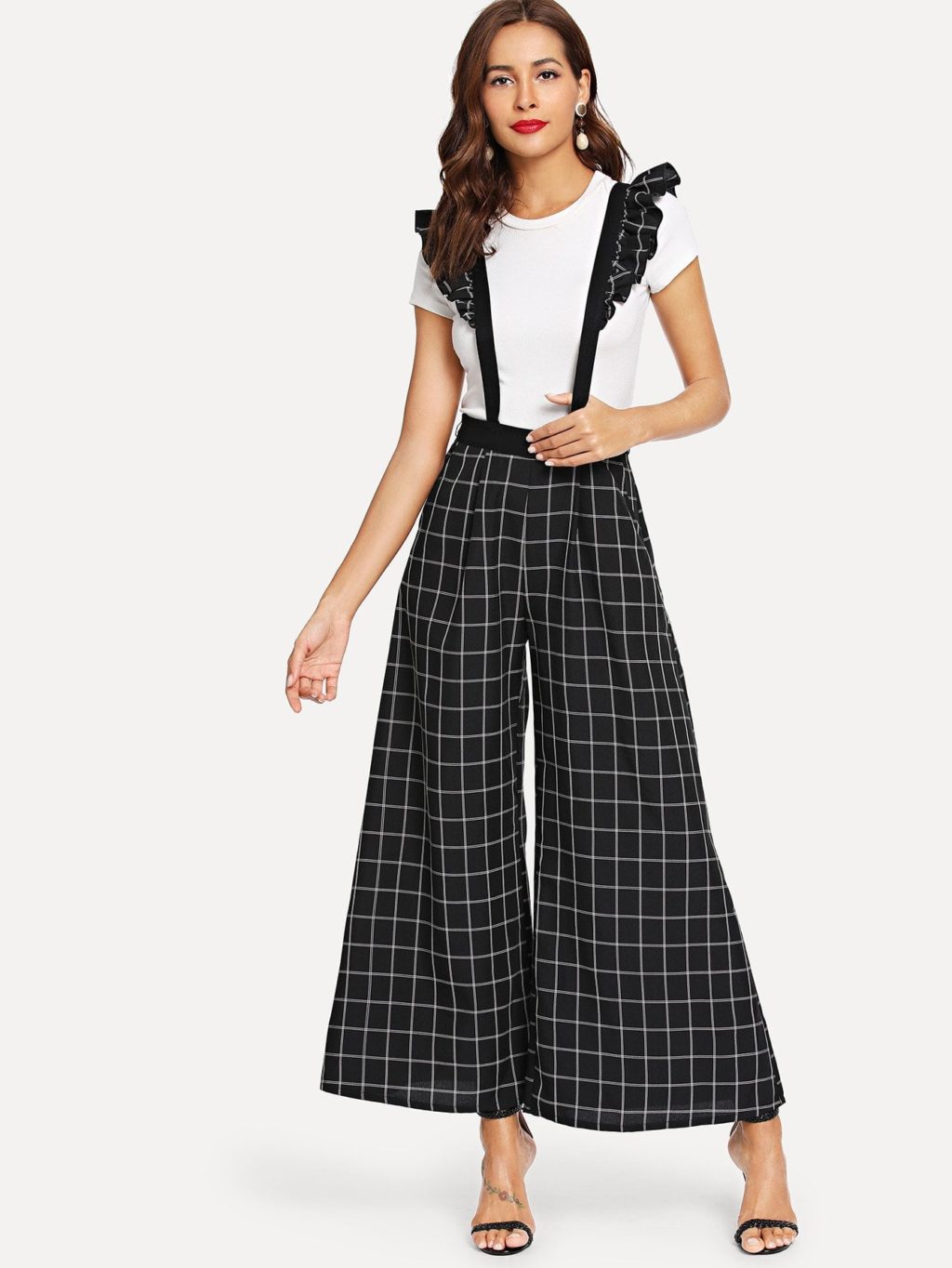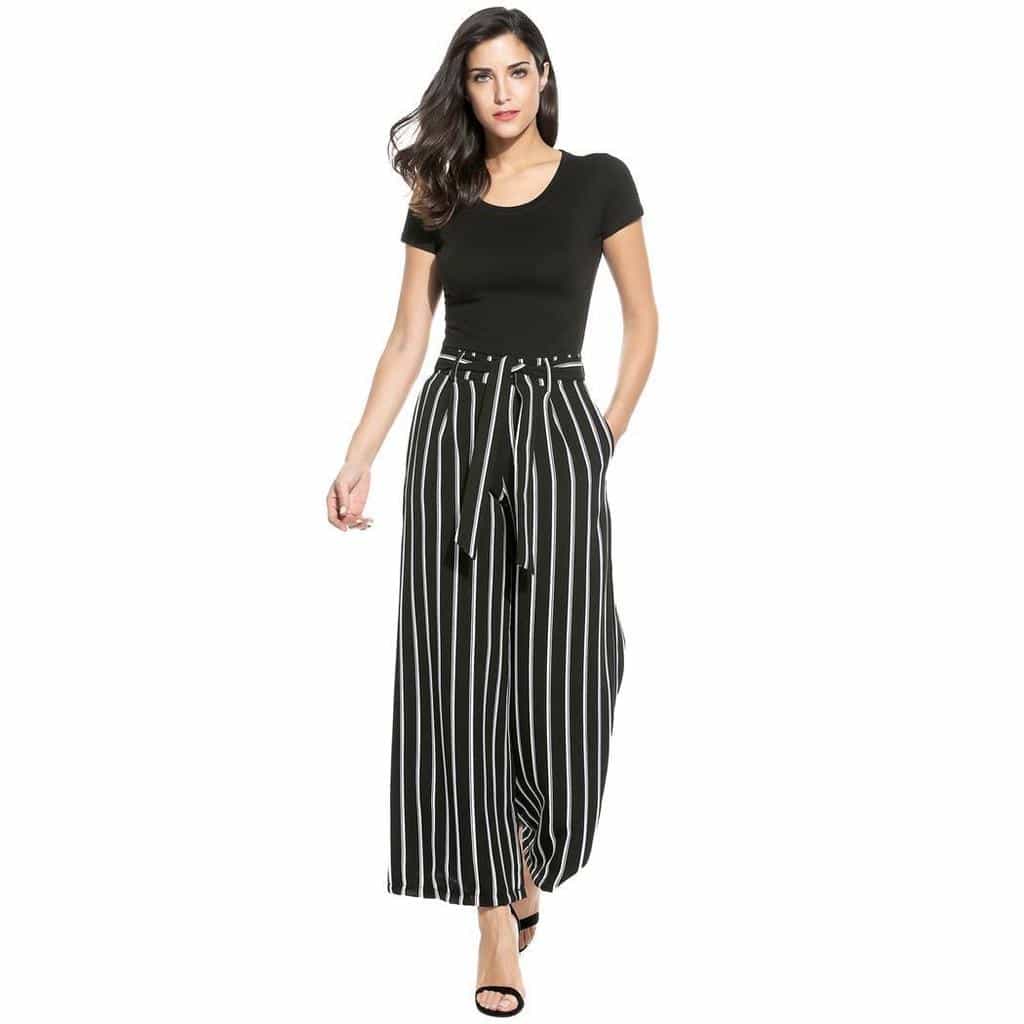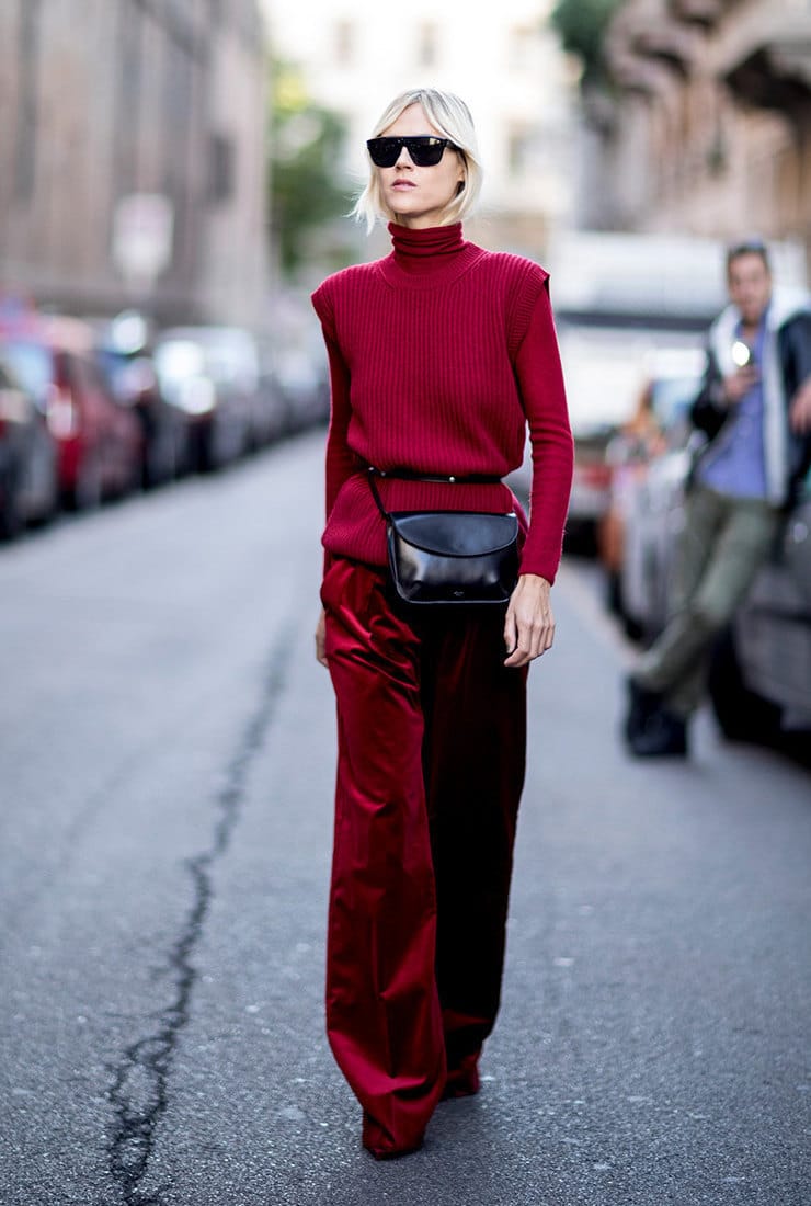 Achieve a monochrome look with a black sweater, T-shirt or turtleneck under black wide pants. By the way, your pants can be of different styles. It can be culottes, palazzo and others.