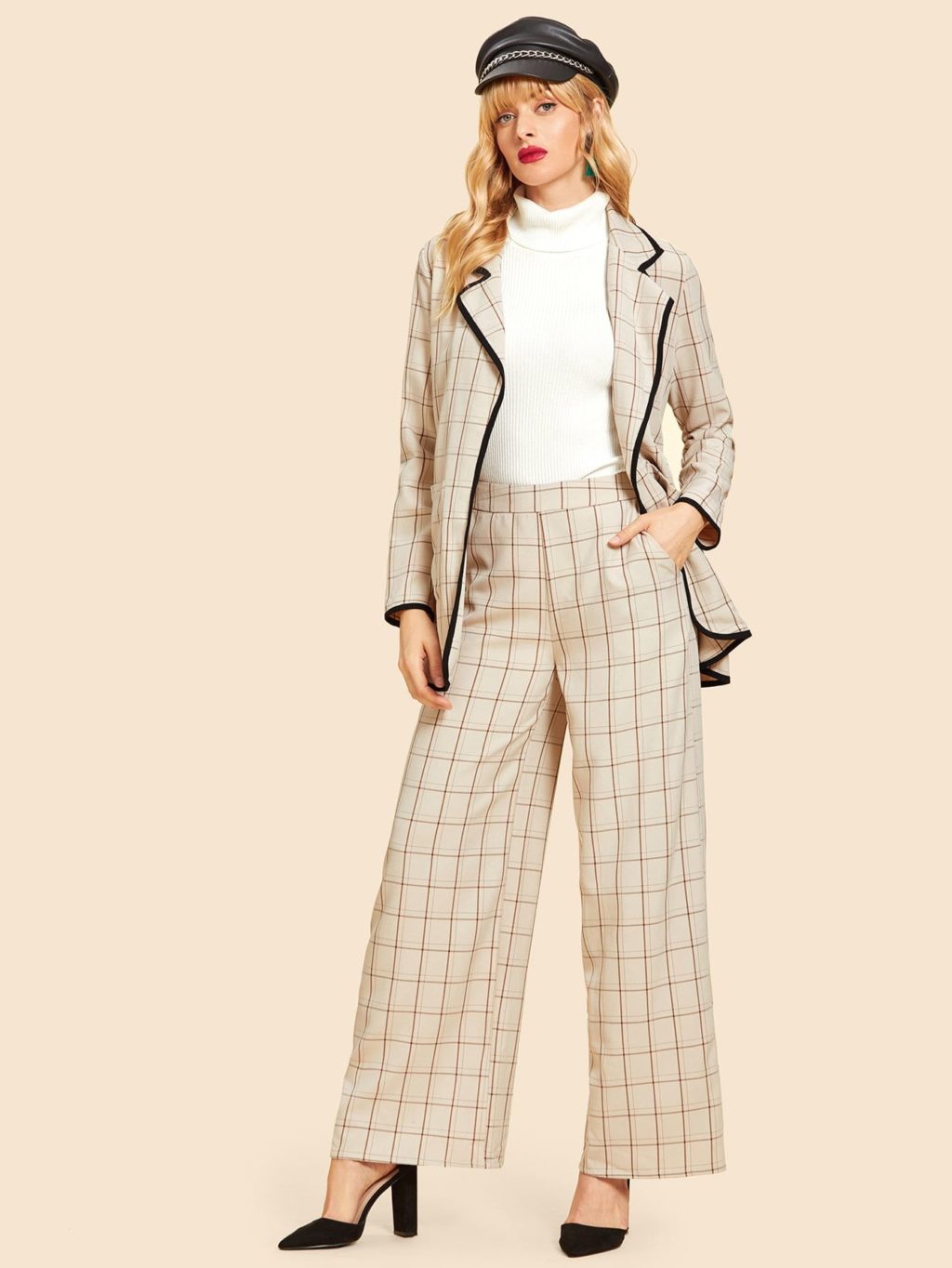Undisputed cell and strip are the original print. And choosing trousers in such a color, you are sure to look at the width of the strip and its location. Because the strip is too wide, it has the ability to visually increase.