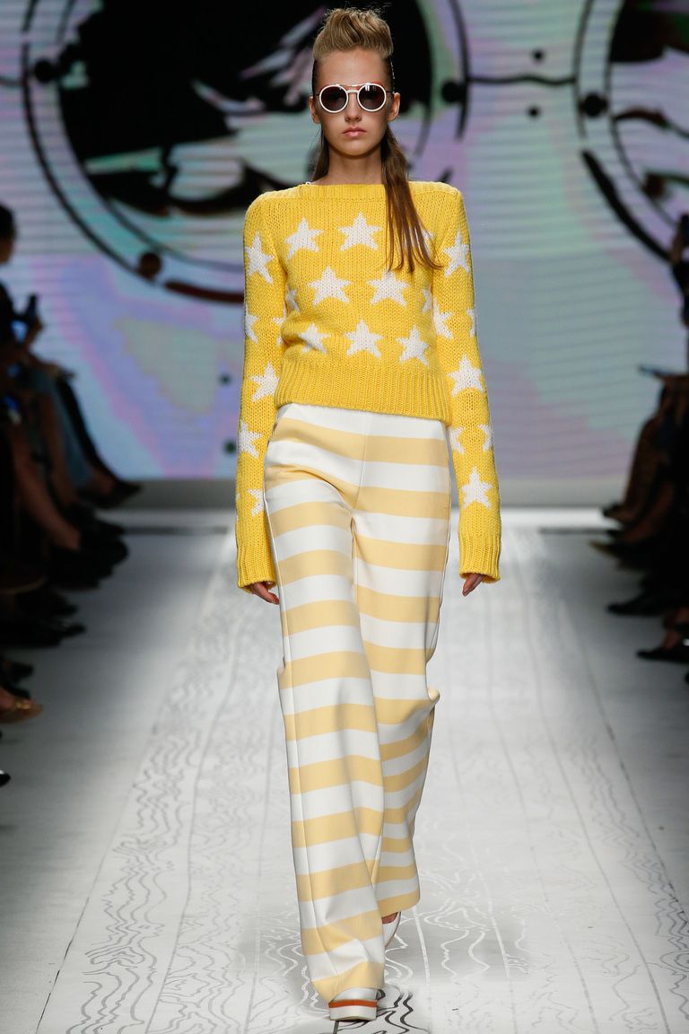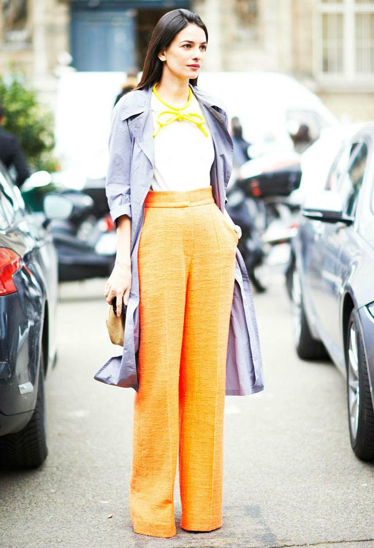 The main rule in this selection is that only one part of your clothes can be bright. If you decide that this will be your top, then the trousers are sure to be chosen in white or other plain, not catchy color.