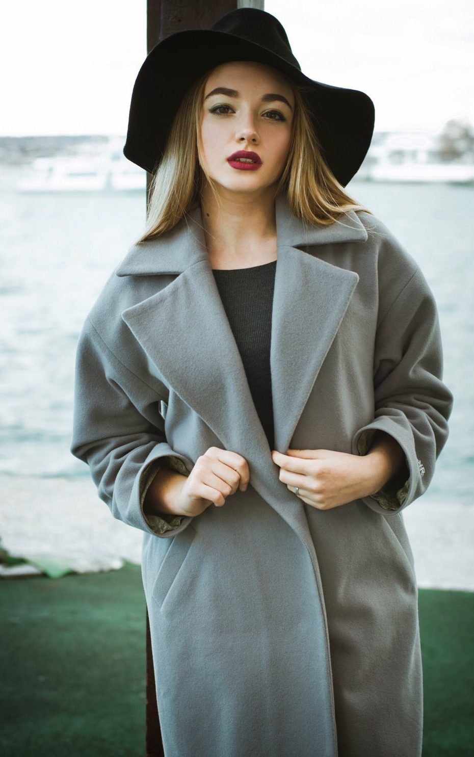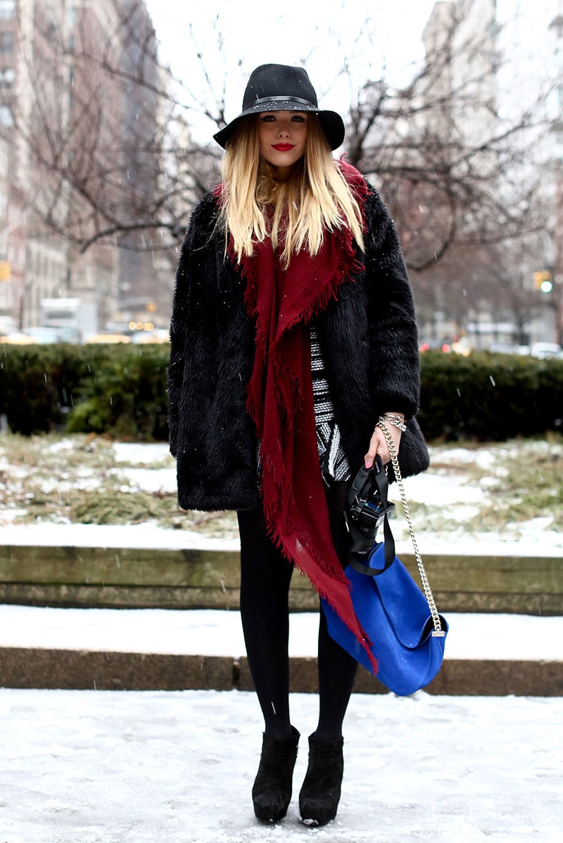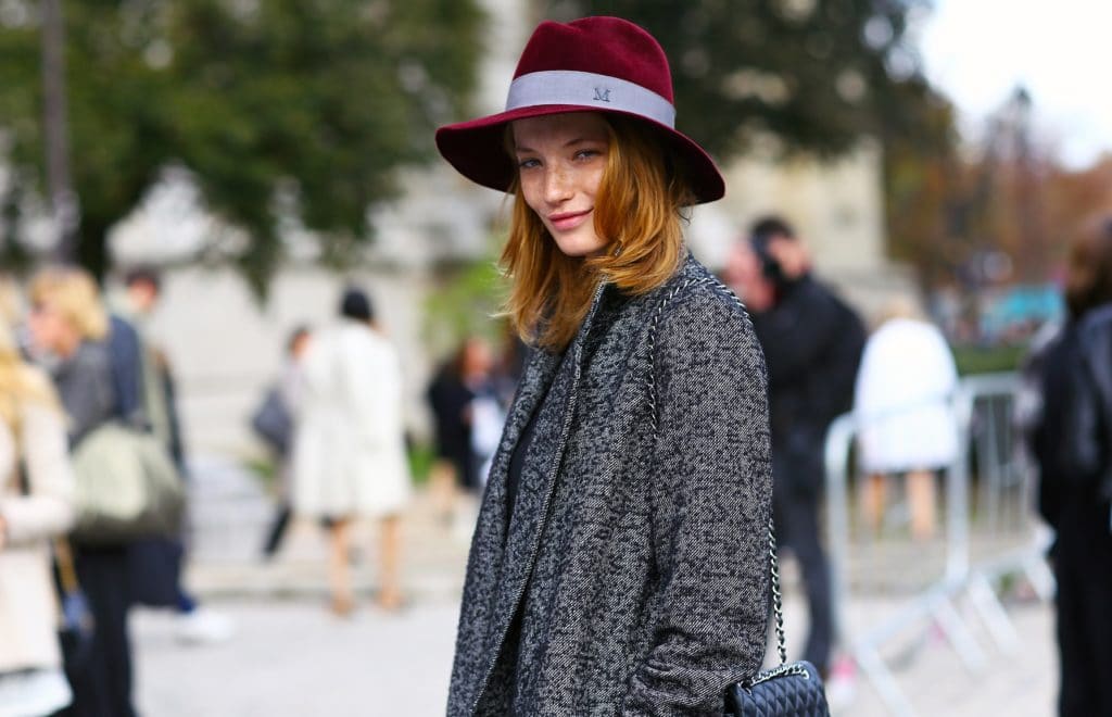 To profitably choose your own hat option, follow these simple rules and you will succeed. Pick up gloves or a scarf in the color of the hat itself, and your boots can also be matched in color. To create an elegant look for a black dress, you can choose a hat either in black or in bright red or white. These are universal colors that fit perfectly together.
