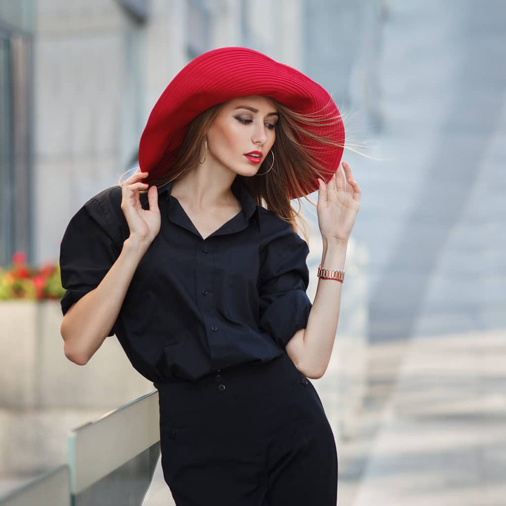 Perhaps one of the most common types of hats is a wide-brimmed hat. These hats are perfect for women with a full figure, as small types of hats will look out of place. A wide-brimmed hat has different heights, colors, and the floors of the hat can have a straight, classic look or more wavy.